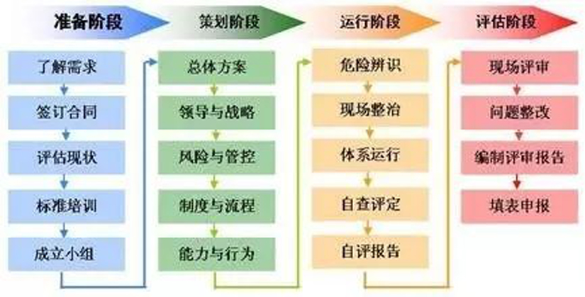 安全生产标准化为安全生产活动获得最佳秩序,保证安全管理及生产条件达到法律、行政法规、部门规章和标准等要求制定的规则,是企业通过建立安全生产责任制,制定安全管理制度和操作规程,排查治理隐患和监控危险源,建立预防机制,规范生产行为,使各生产环节符合有关安全生产法律法规和标准规范的要求,人、机、物、环处于良好的生产状态,并持续改进,不断加强企业安全生产规范化建设。其采用的运行模式就是众所周知的戴明模式(PDCA循环),即计划、实施、检查、改进。