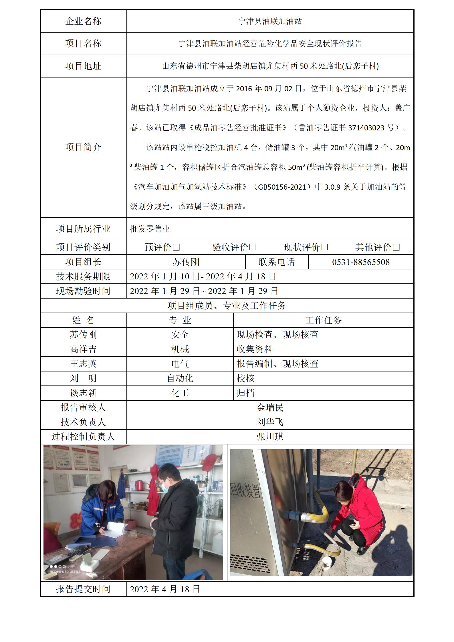 宁津县油联加油站安全评价报告信息公开