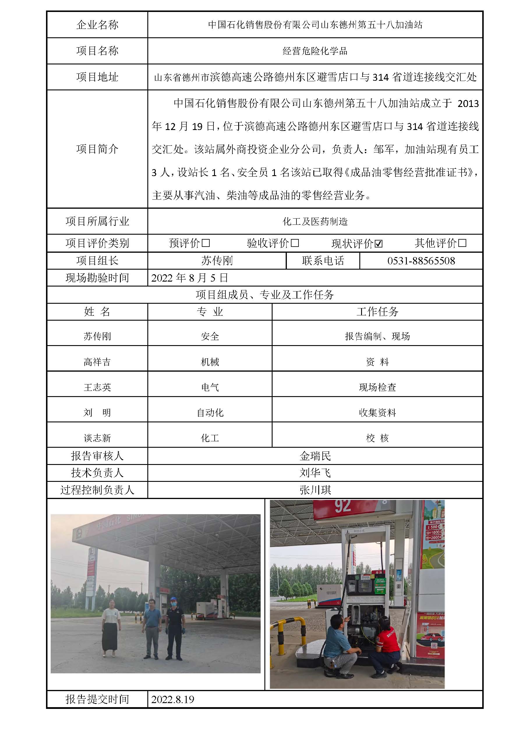 中国石化销售股份有限公司山东德州第五十八加油站安全评价报告信息公开