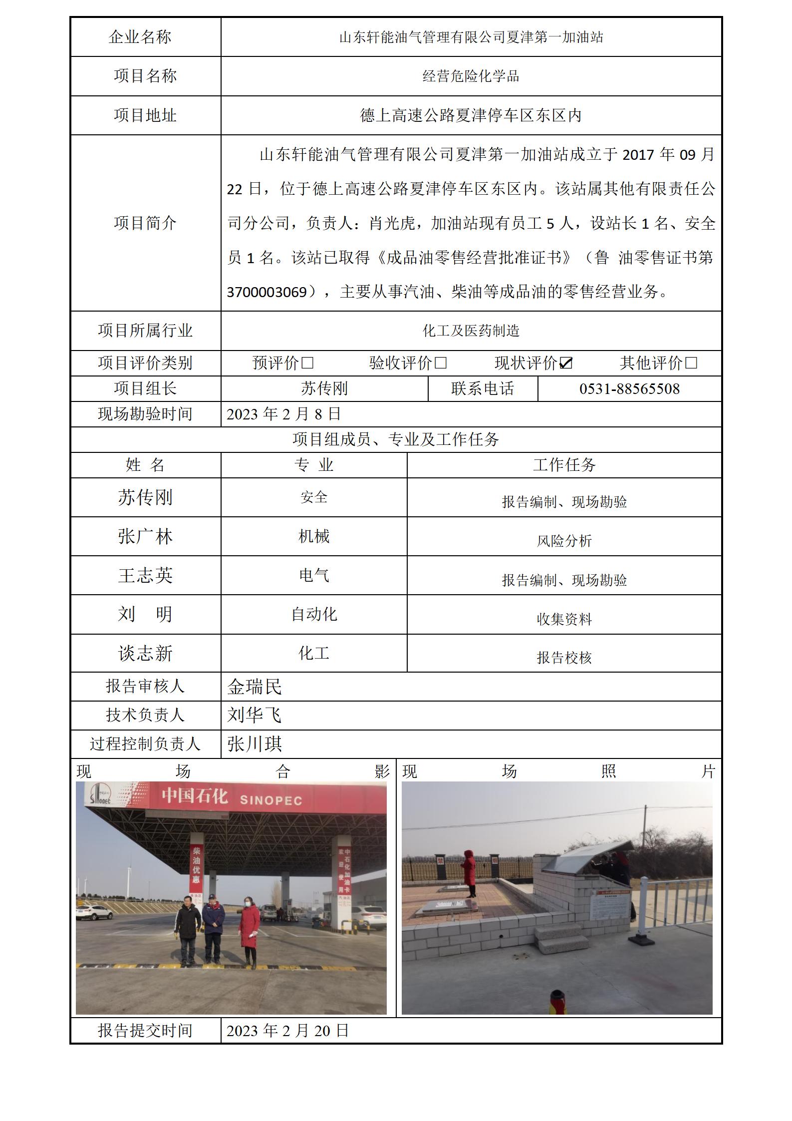 山东轩能油气管理有限公司夏津第一加油站安全评价报告信息公开