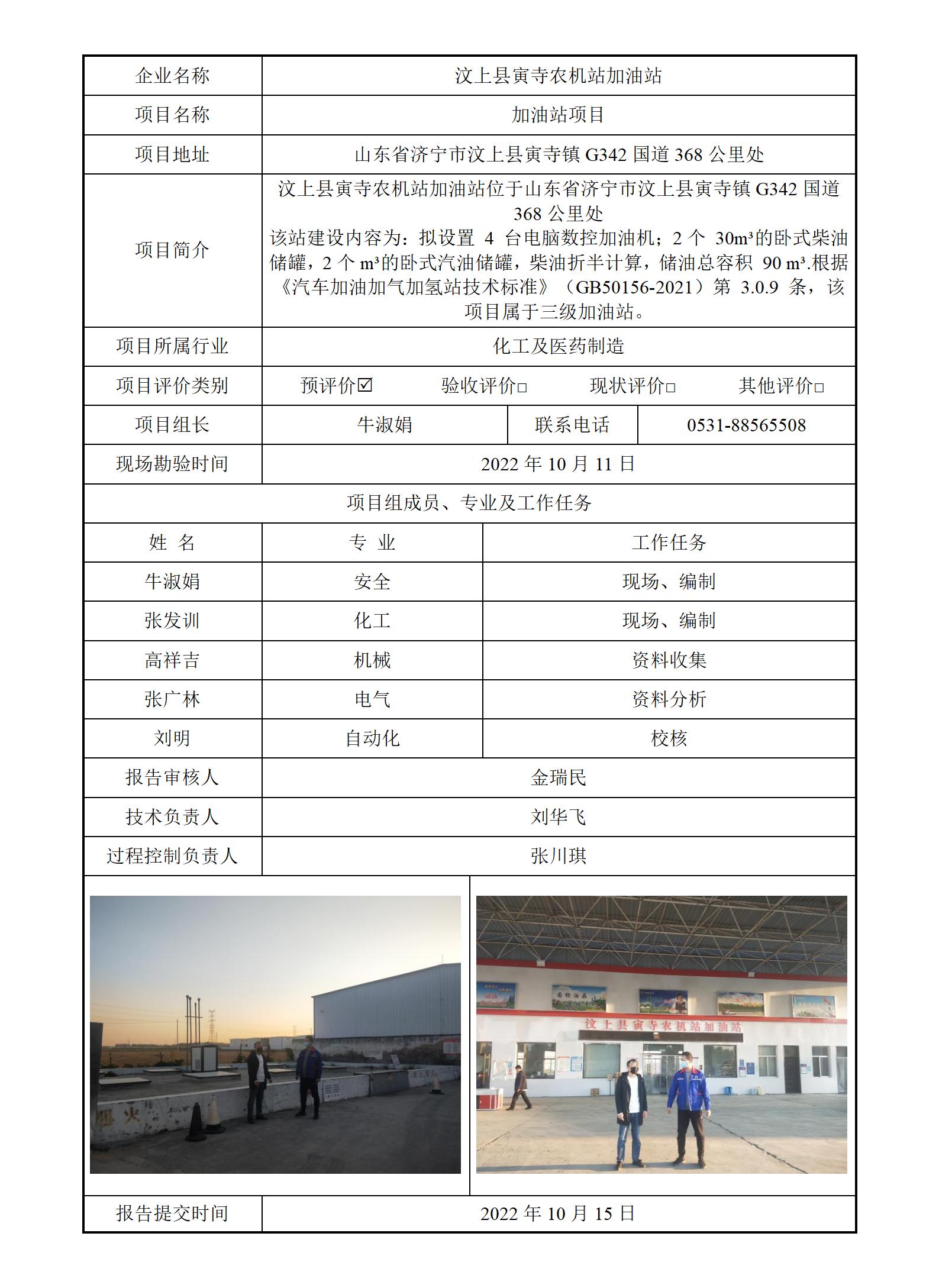 济宁县汶上县寅寺农机加油站安全评价报告信息公开