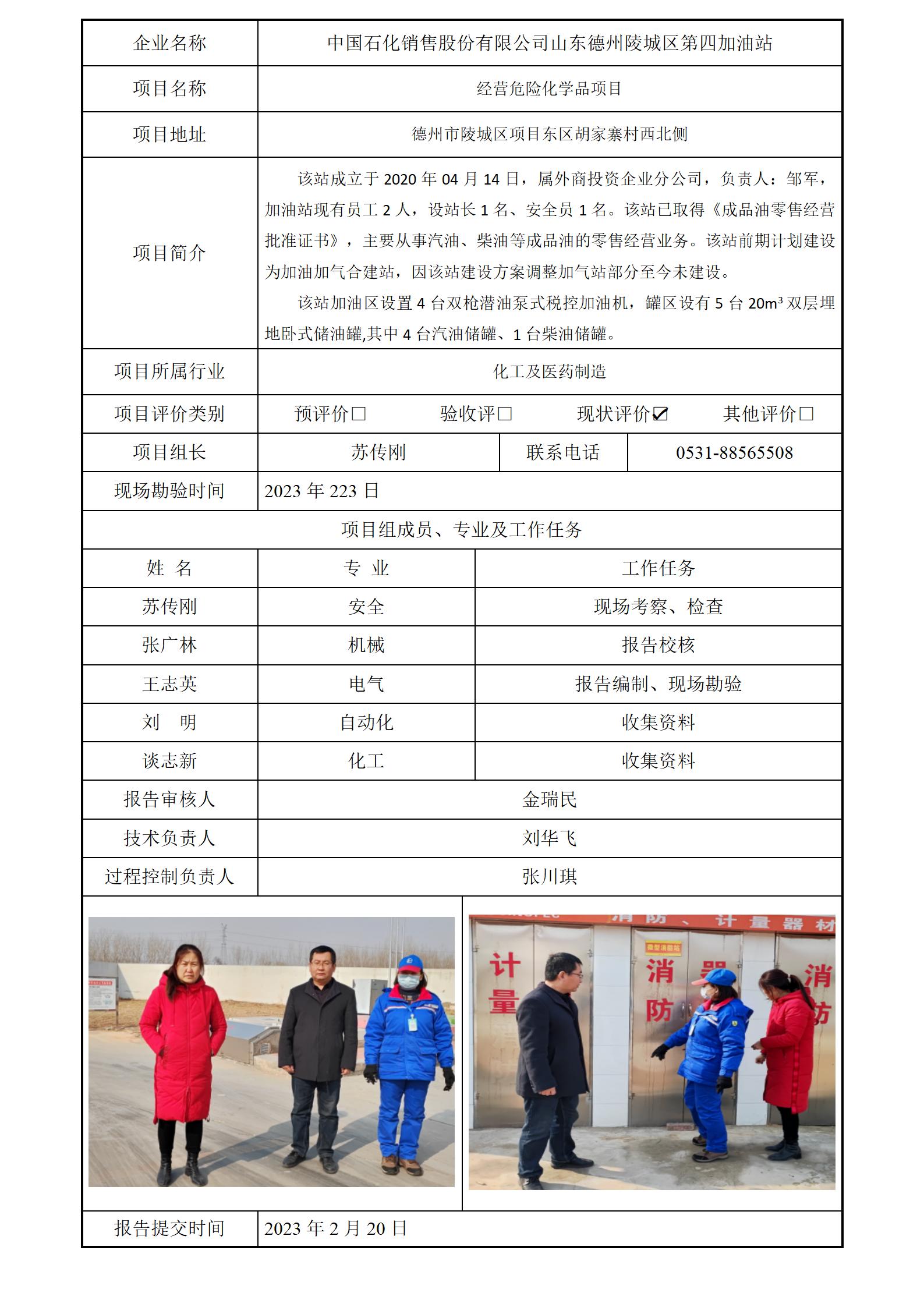 中国石化销售股份有限公司山东德州陵城区第四加油站安全评价报告信息公开