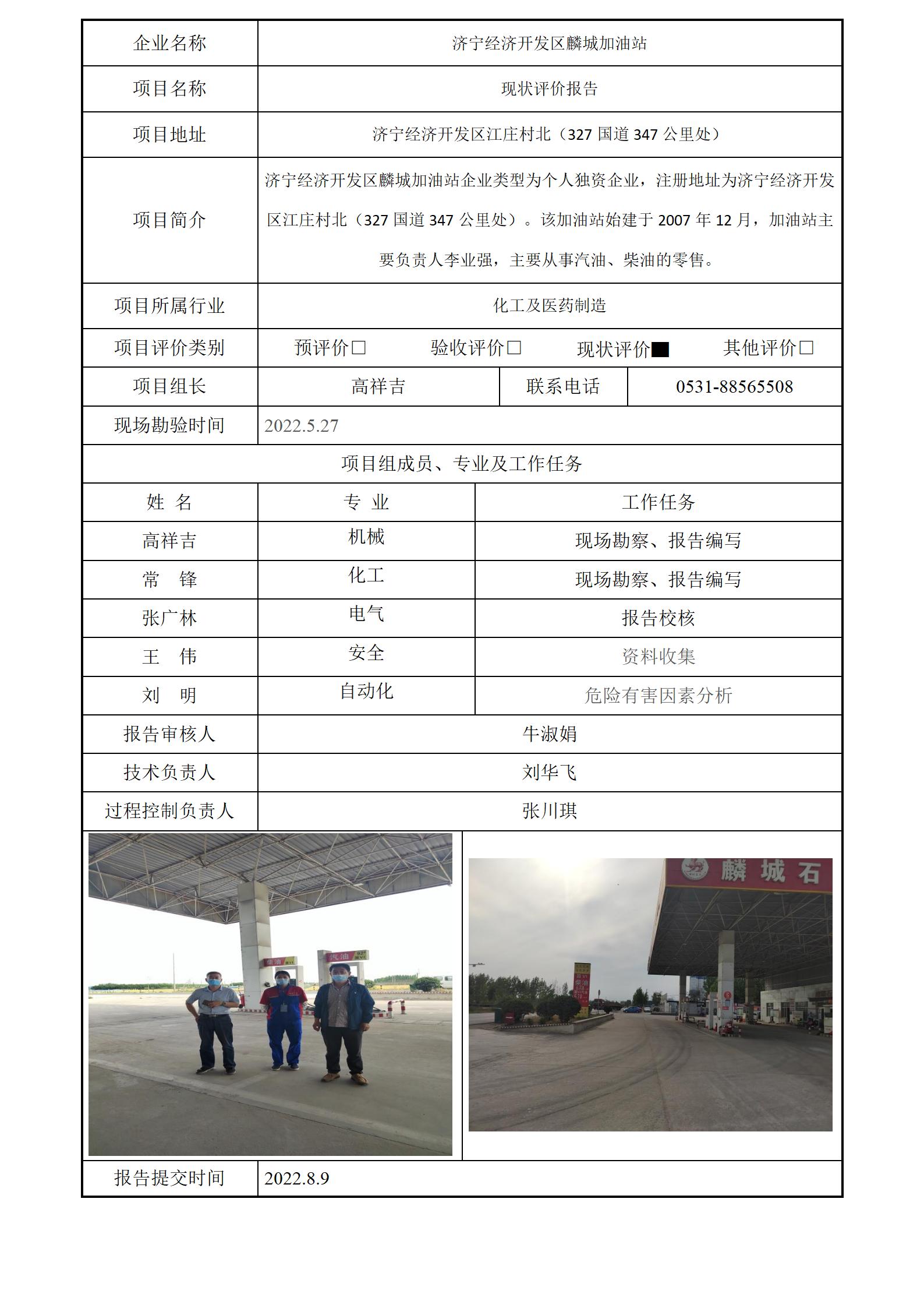 济宁经济开发区麟城加油站安全评价报告信息公开