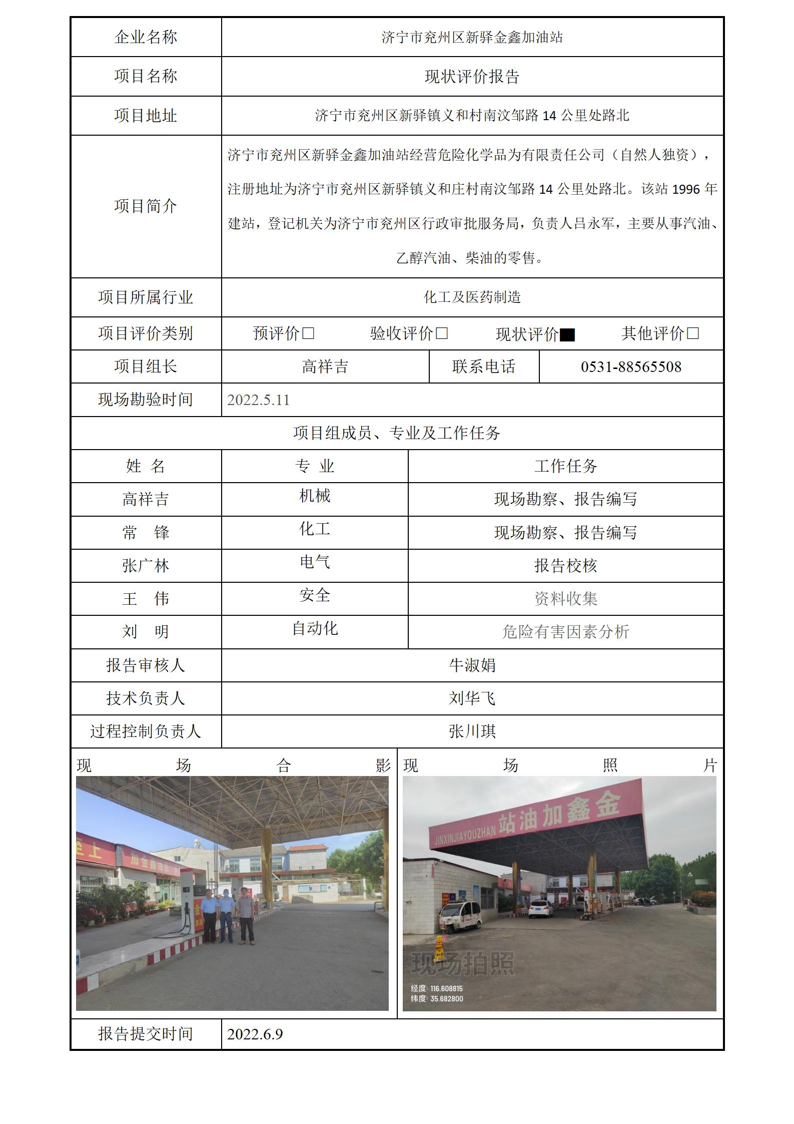济宁市兖州区新驿金鑫加油站安全评价报告信息公开