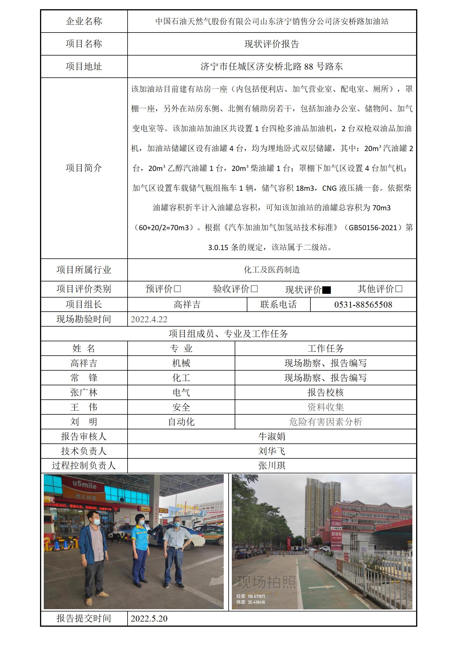 中国石油天然气股份有限公司山东济宁销售分公司济安桥路加油站安全评价报告信息公开