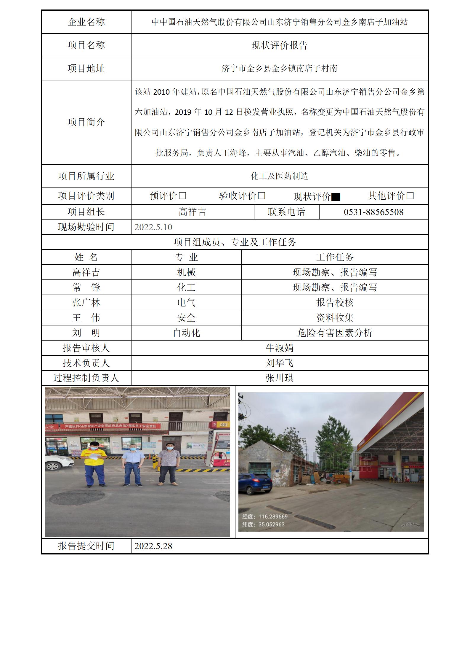 中国石油天然气股份有限公司山东济宁销售分公司金乡南店子加油站安全评价报告信息公开