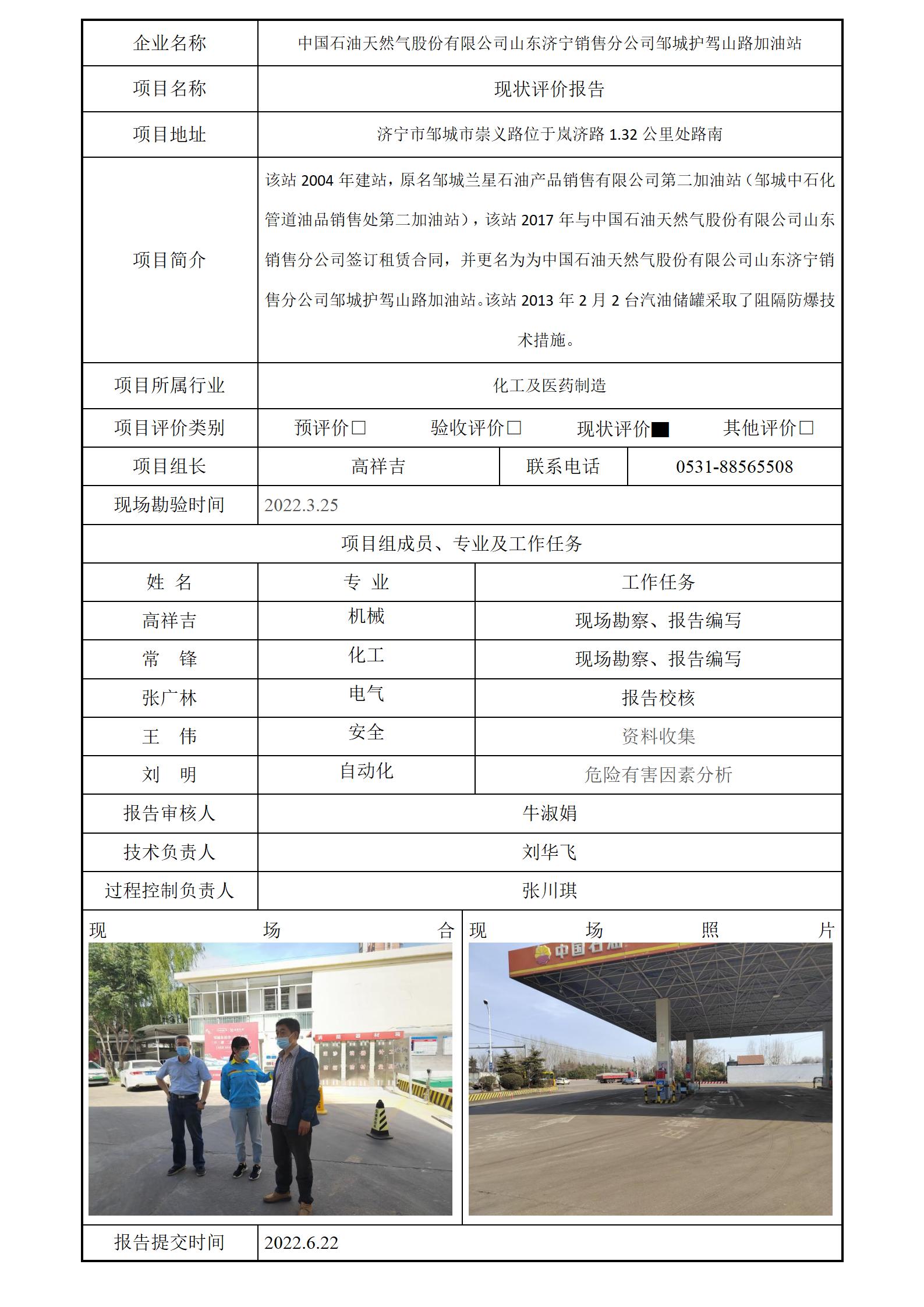 中国石油天然气股份有限公司山东济宁销售分公司邹城护驾山路加油站安全评价报告信息公开
