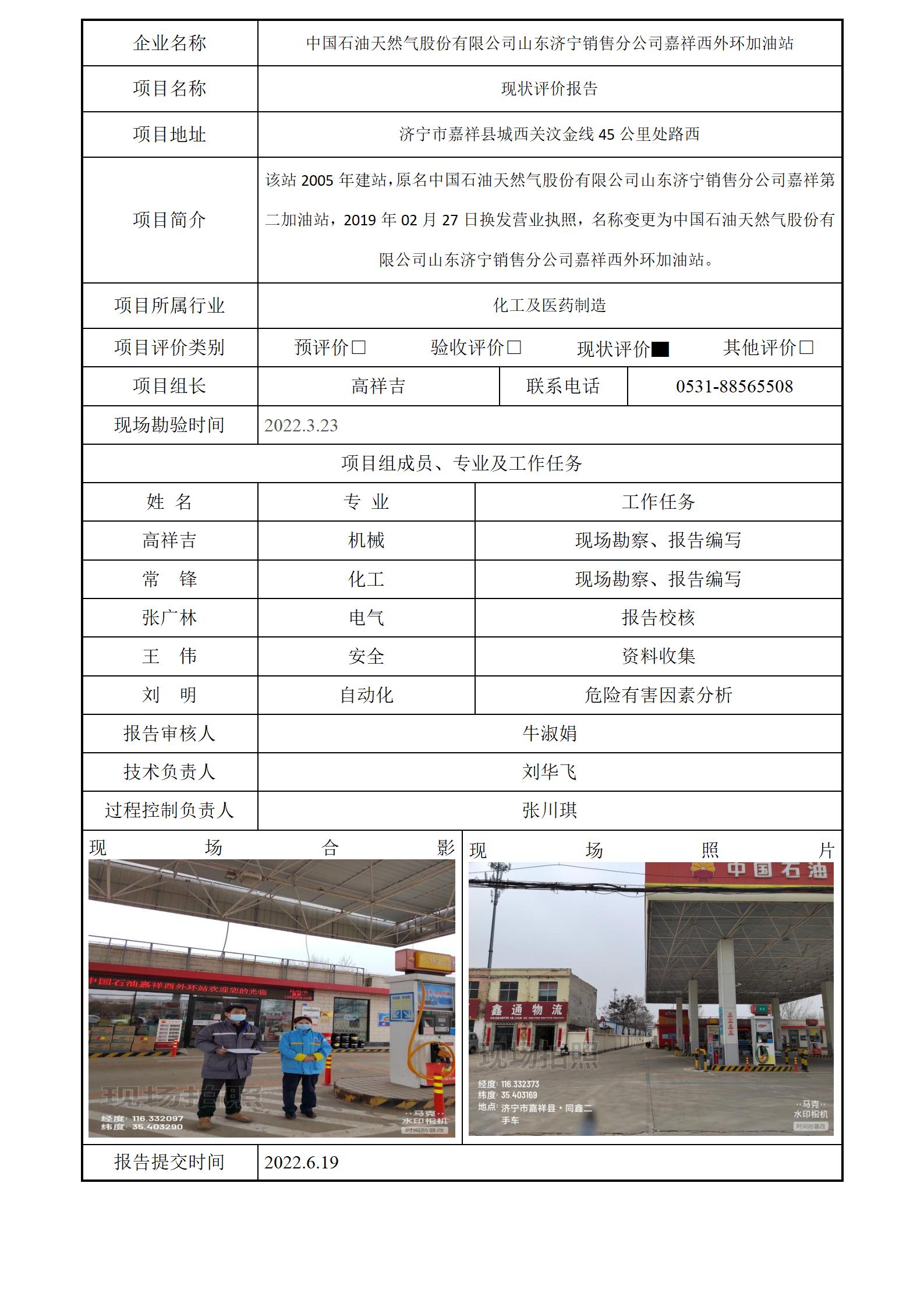 中国石油天然气股份有限公司山东济宁销售分公司嘉祥西外环加油站安全评价报告信息公开