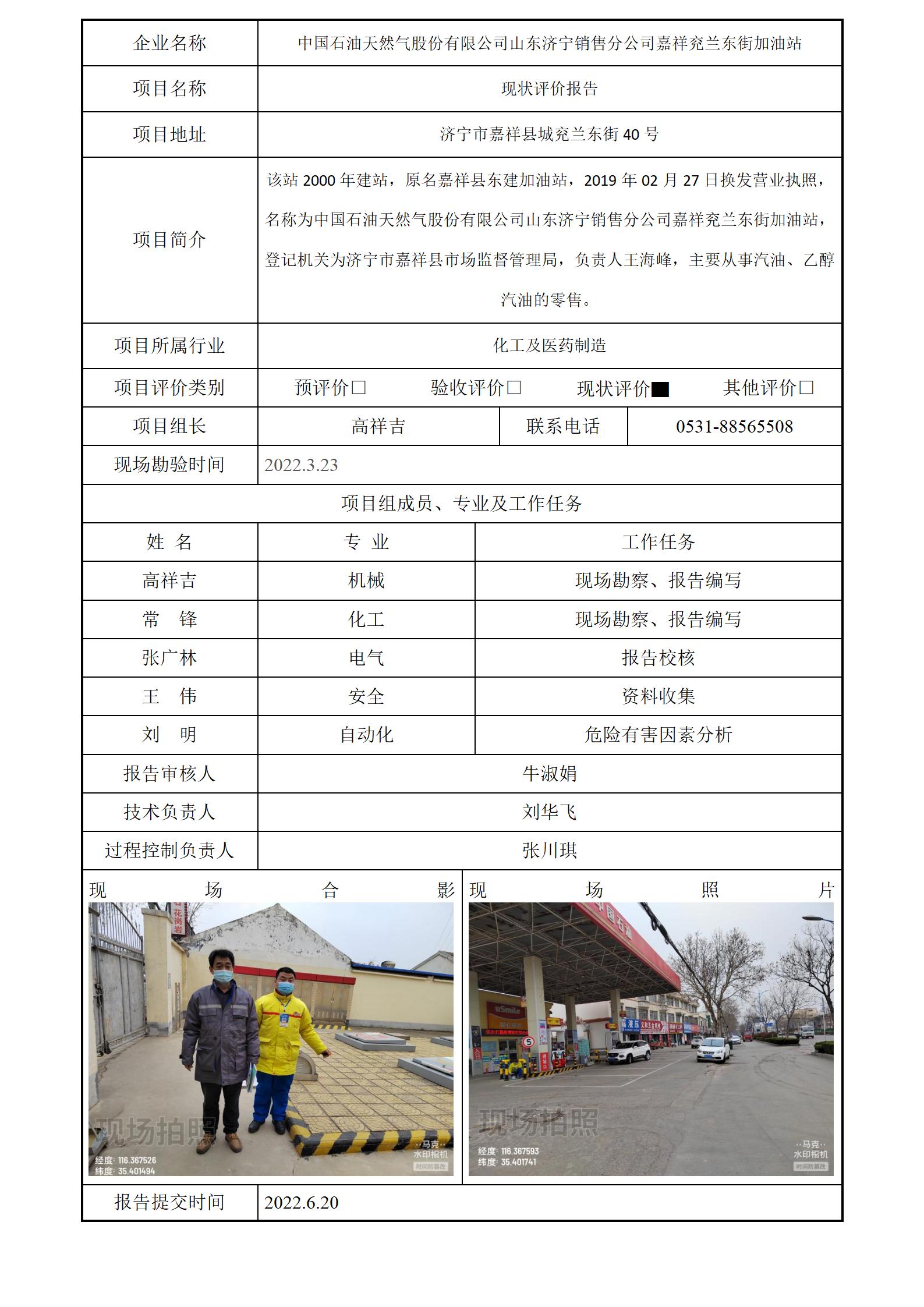 中国石油天然气股份有限公司山东济宁销售分公司嘉祥兖兰东街加油站安全评价报告信息公开