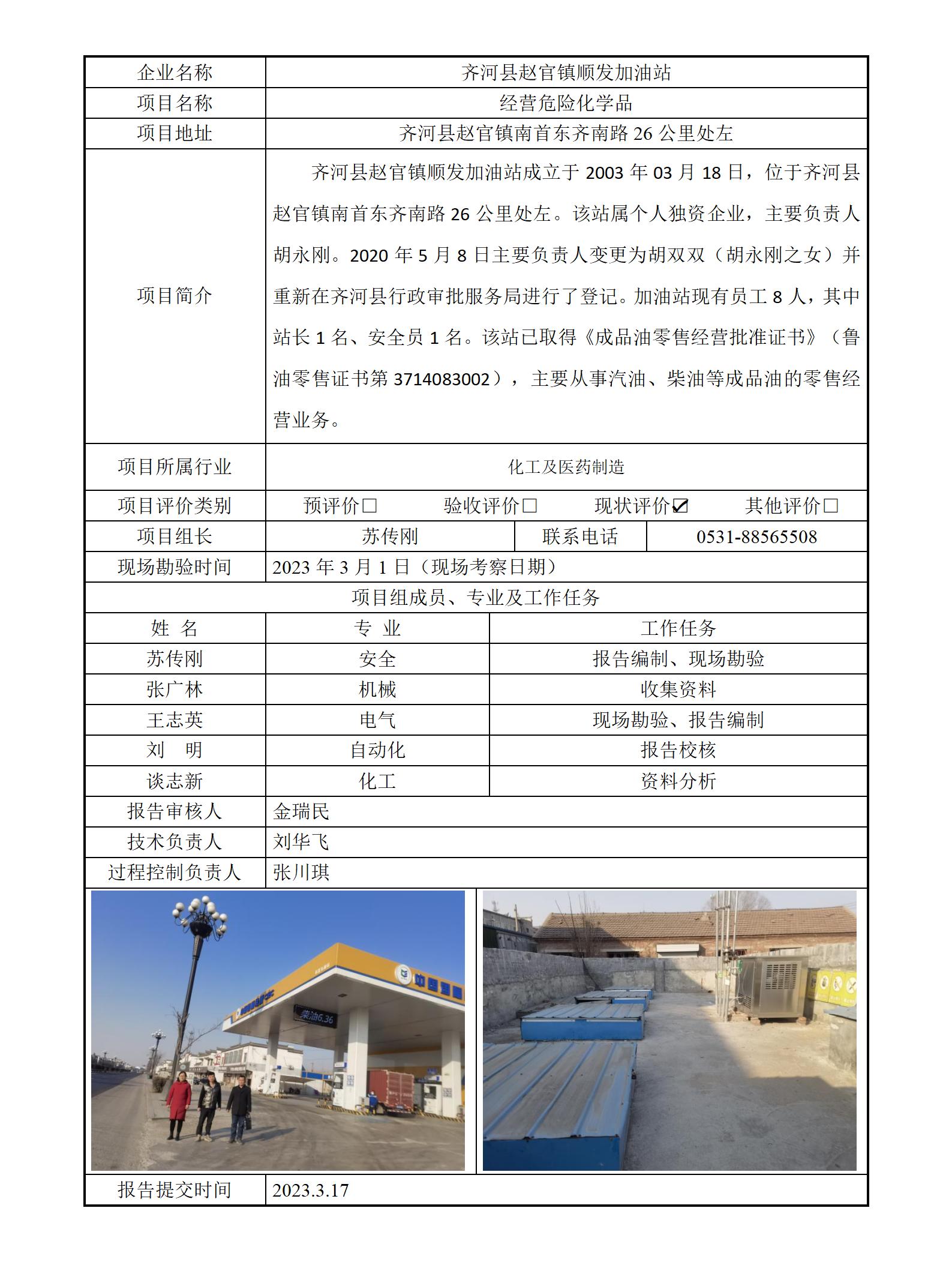 齐河县赵官镇顺加油站发安全评价报告网上公示