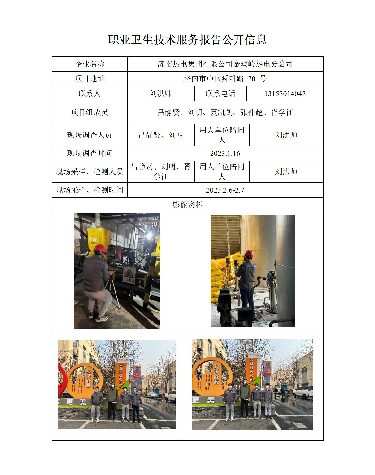 ZBZY23-DQ-004济南热电集团有限公司金鸡岭热电分公司 职业卫生技术服务报告公开信息