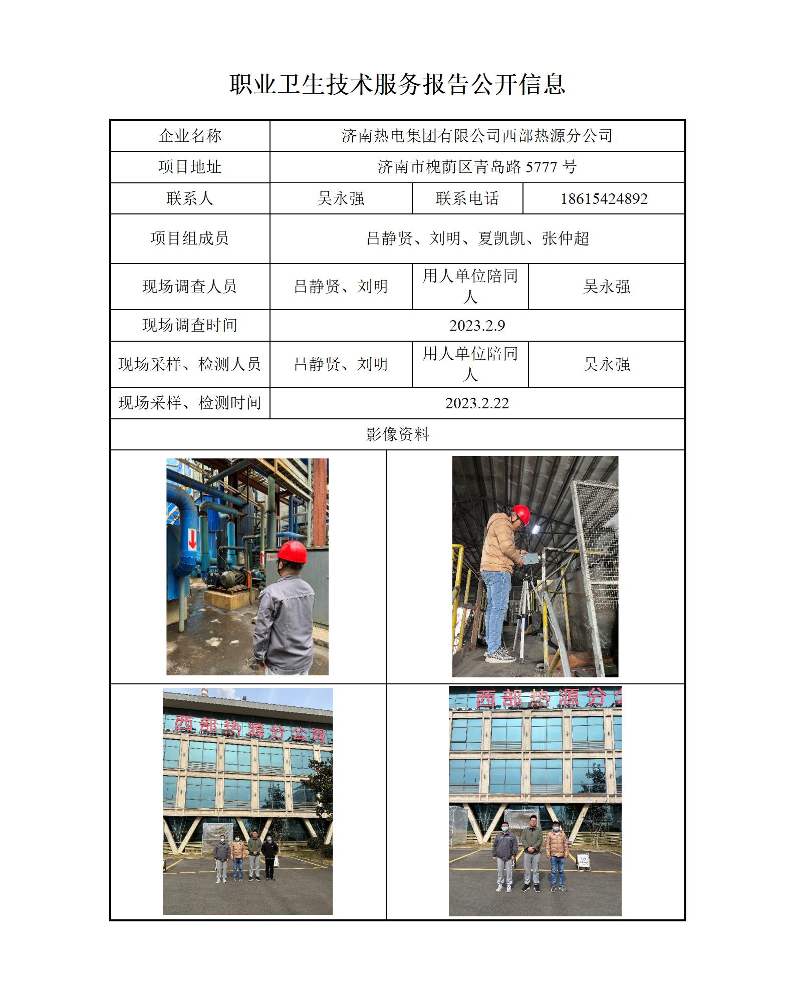 ZBZY23-DQ-008济南热电集团有限公司西部热源分公司 职业卫生技术服务报告公开信息