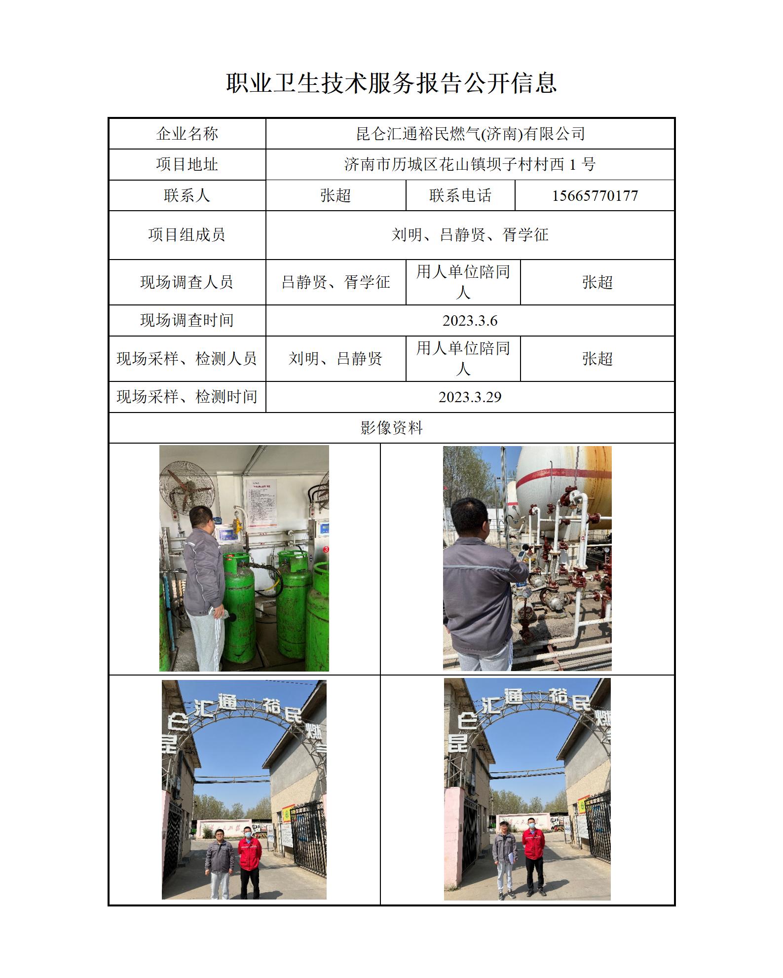 ZBZY23-DQ-020昆仑汇通裕民燃气(济南)有限公司 职业卫生技术服务报告公开信息
