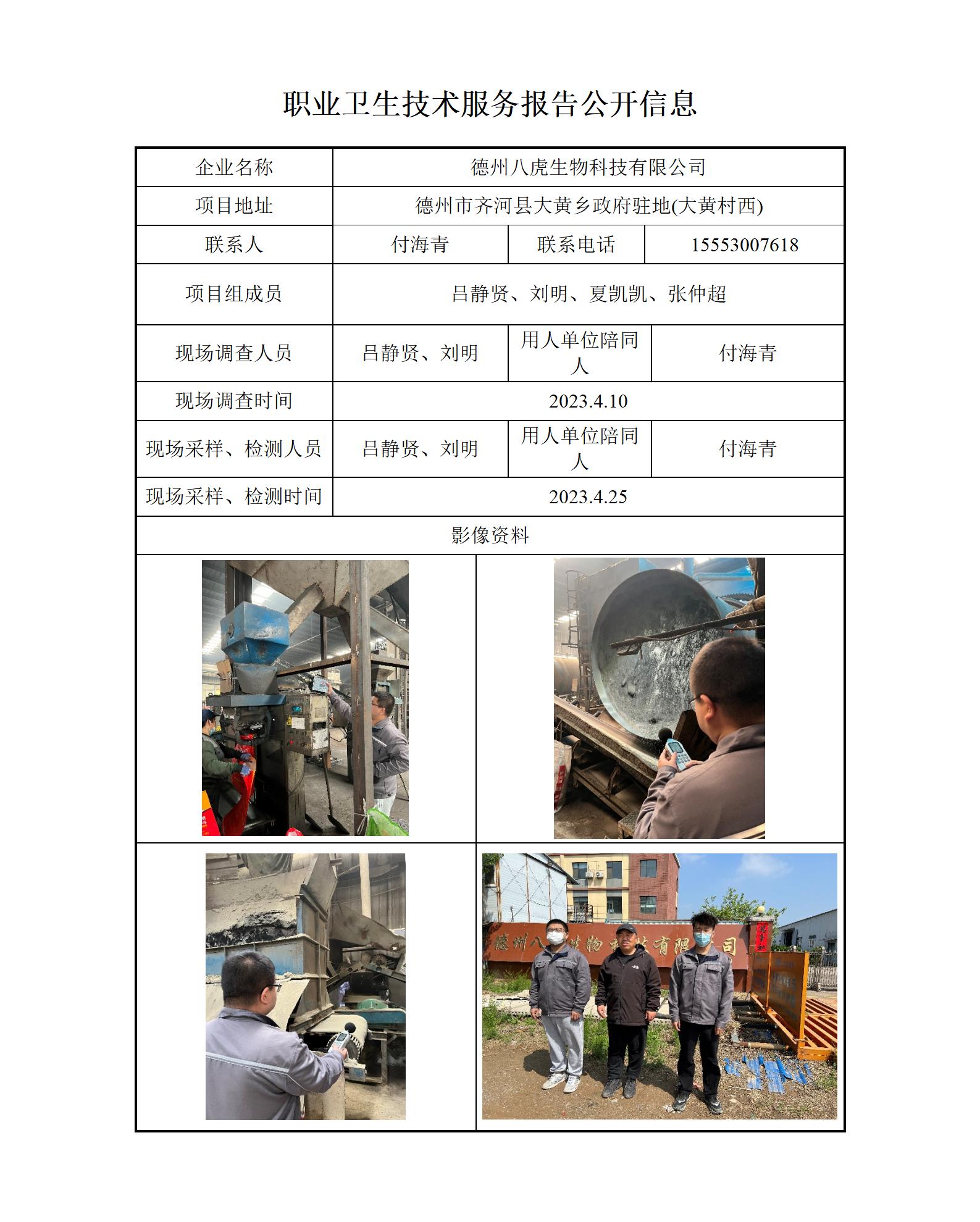 ZBZY23-DQ-031德州八虎生物科技有限公司 职业卫生技术服务报告公开信息
