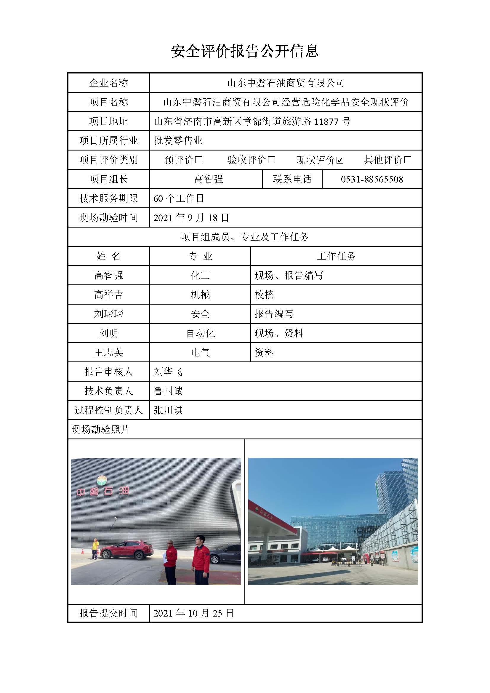 山东中磐石油商贸有限公司安全评价报告信息公开