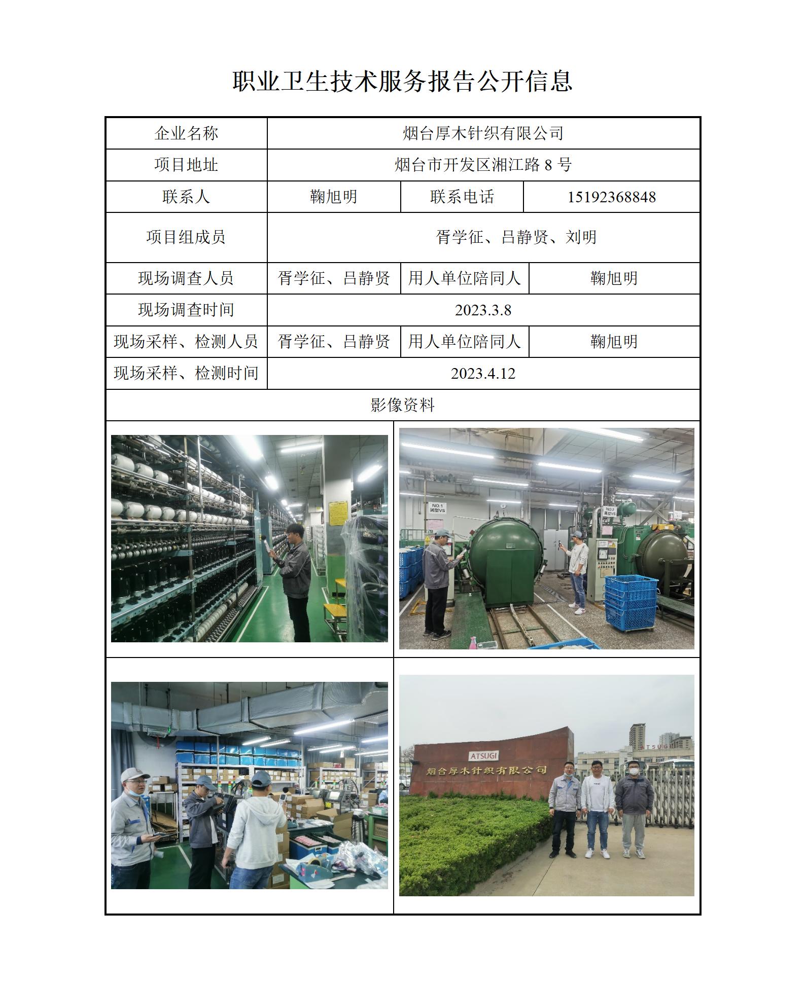 ZBZY23-DQ-026烟台厚木针织有限公司定期检测 信息公开