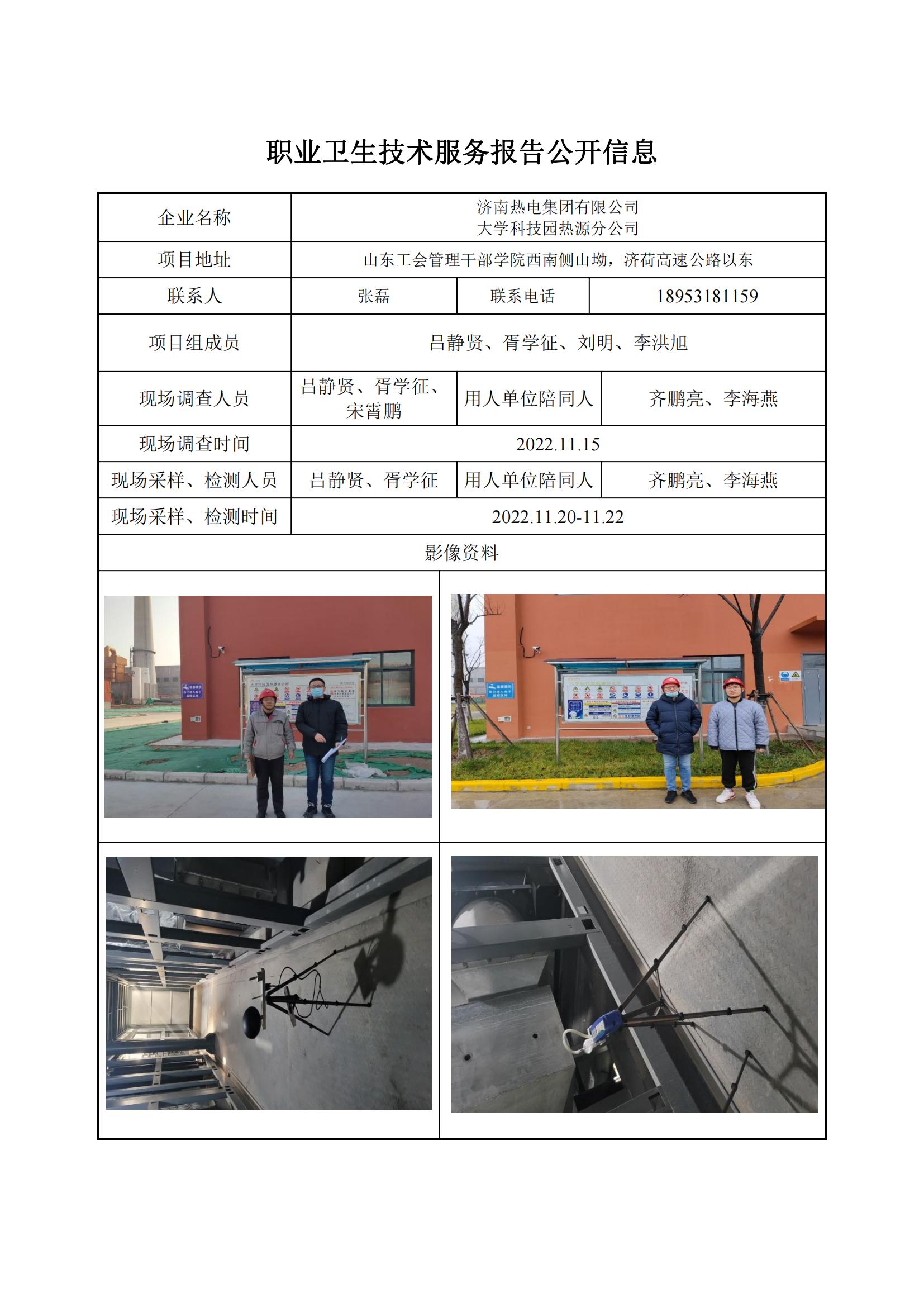 ZBZY23-KP-001 济南热电集团有限公司大学科技园热源分公司职业卫生控制效果评价信息公开