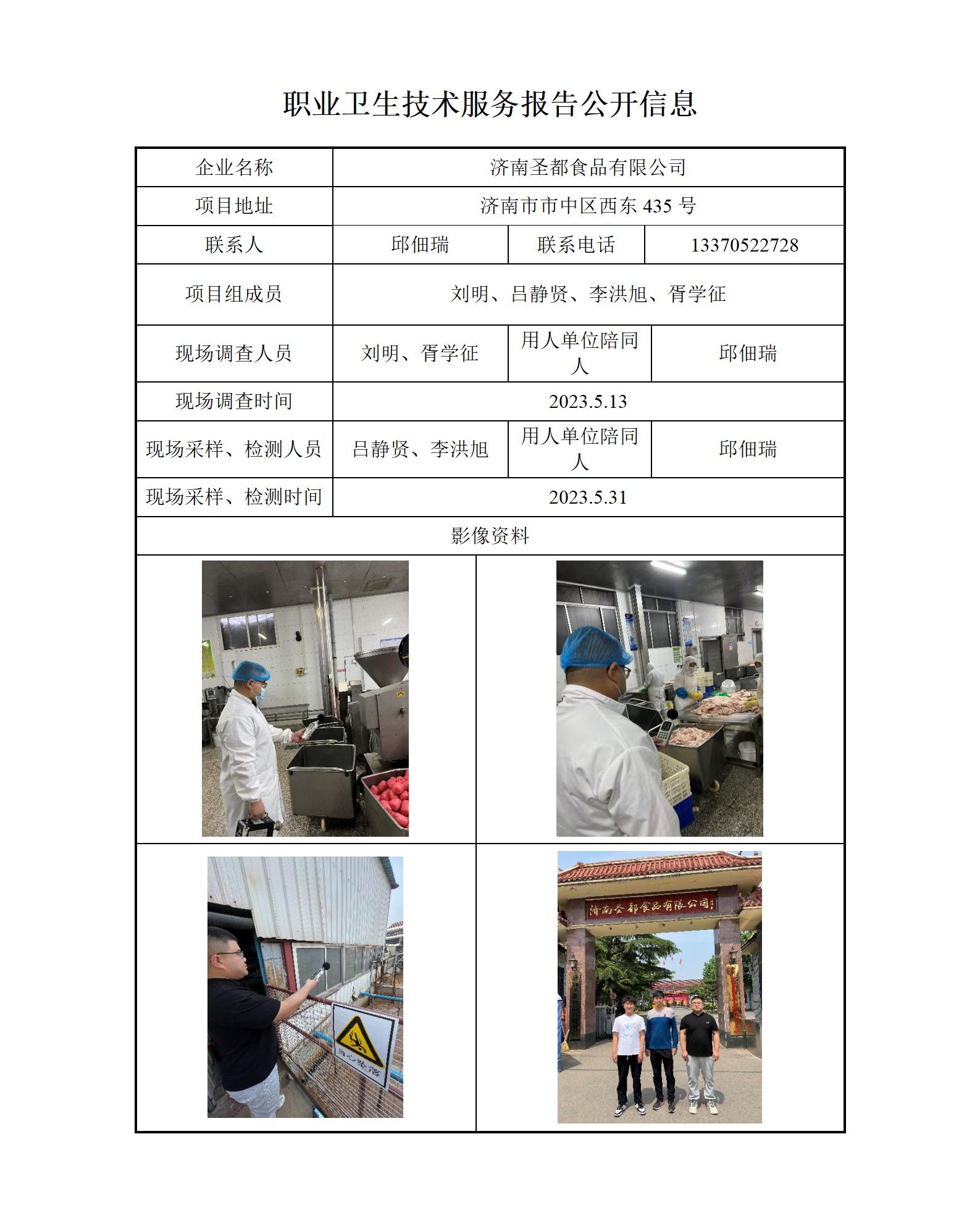 ZBZY23-DQ-043济南圣都食品有限公司 职业卫生技术服务报告公开信息