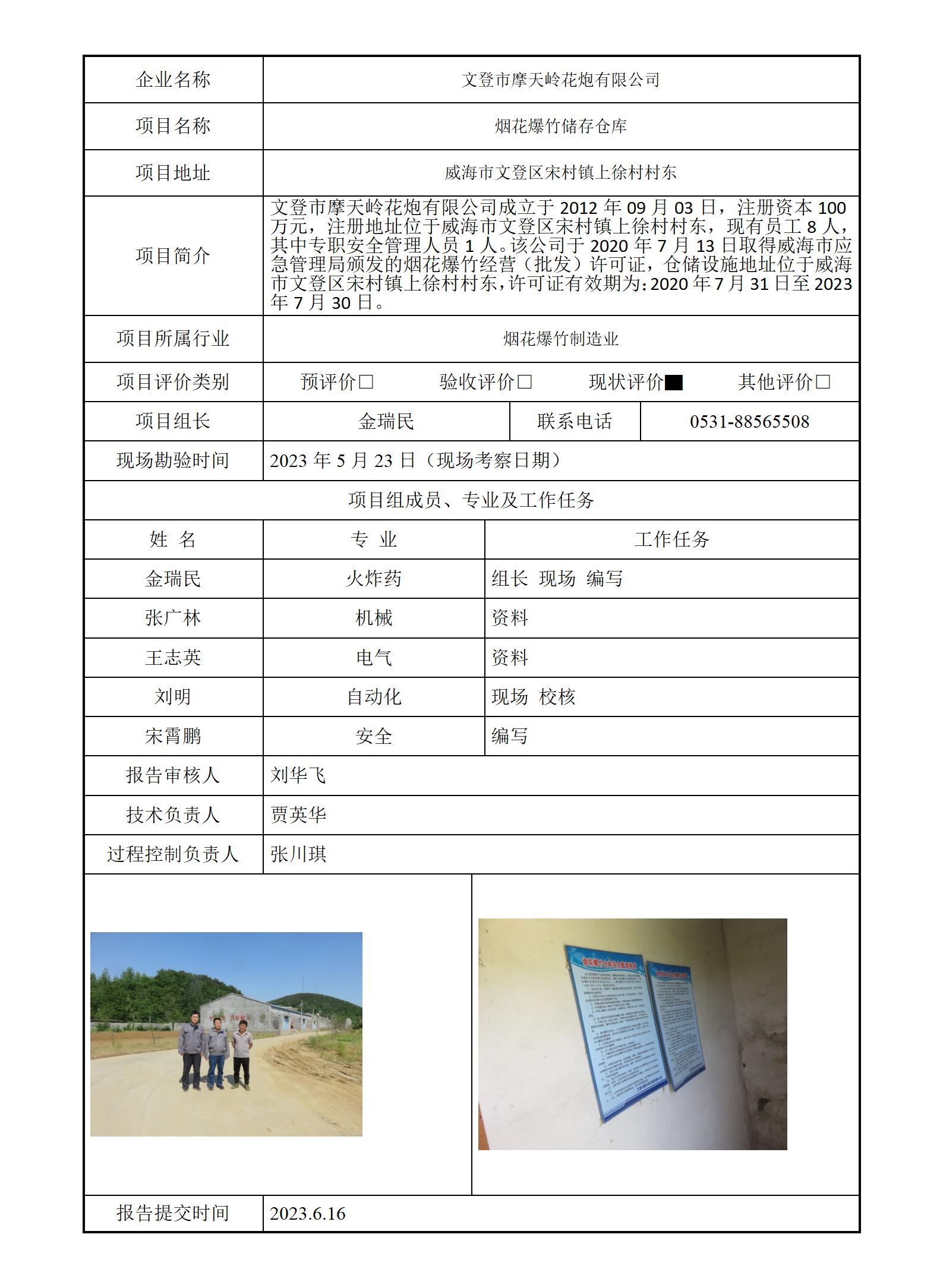 文登市摩天岭花炮有限公司安全现状评价项目信息公开