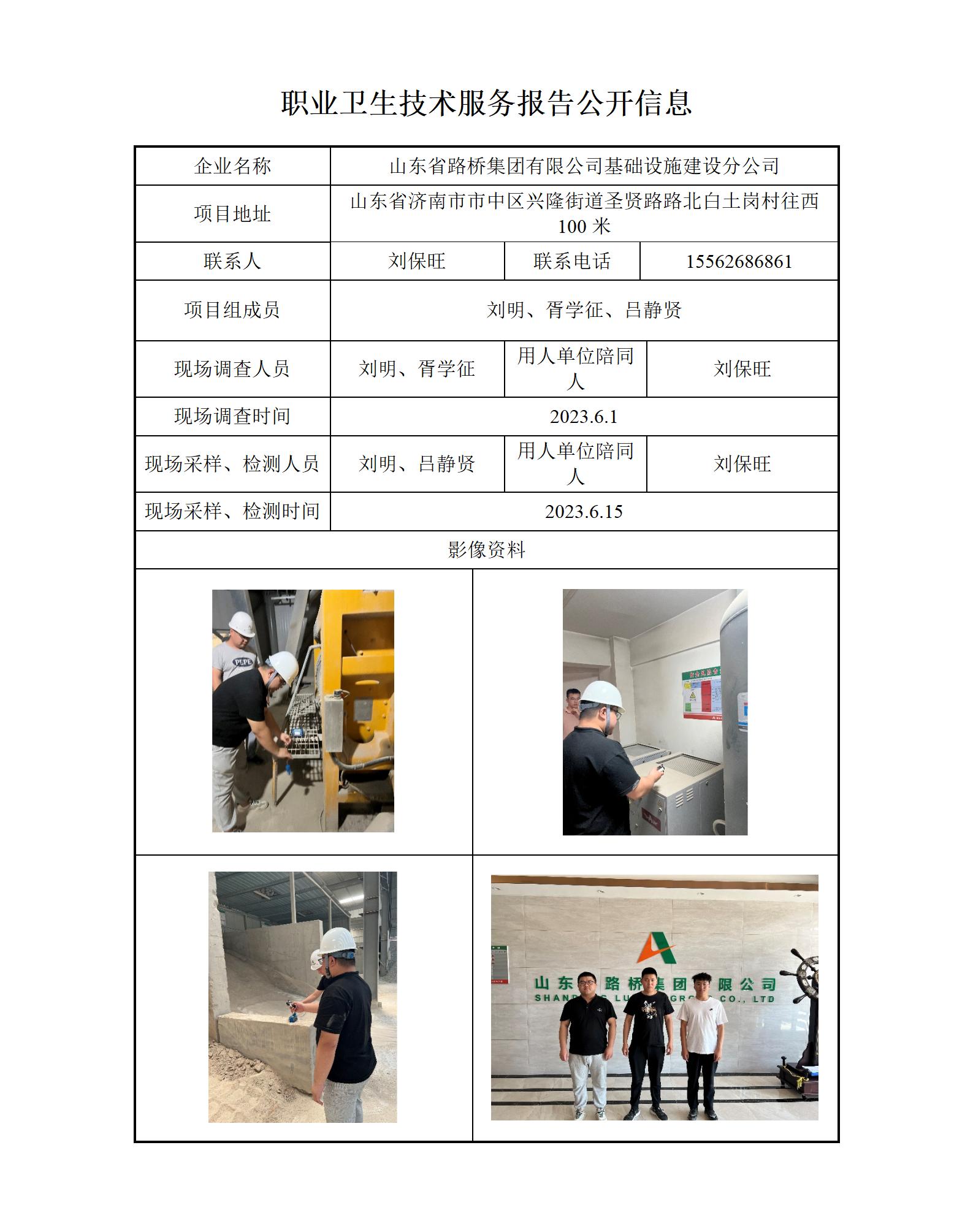ZBZY23-DQ-045山东省路桥集团有限公司基础设施建设分公司 职业卫生技术服务报告公开信息