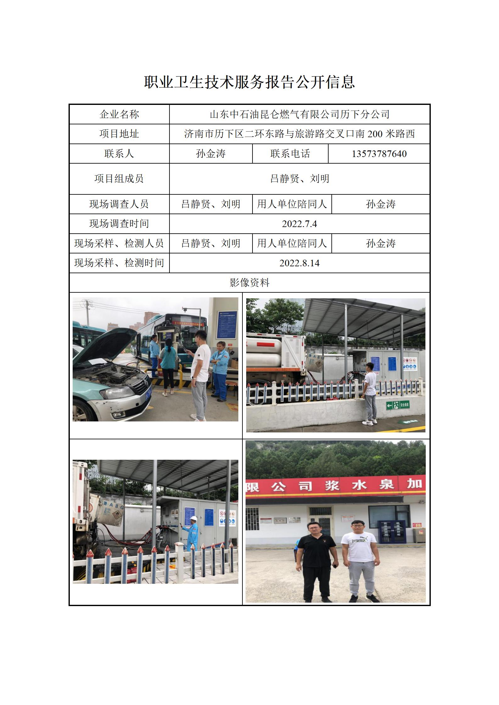 ZBZY22-XP-012山东中石油昆仑燃气有限公司历下分公司职业病危害现状评价信息公开