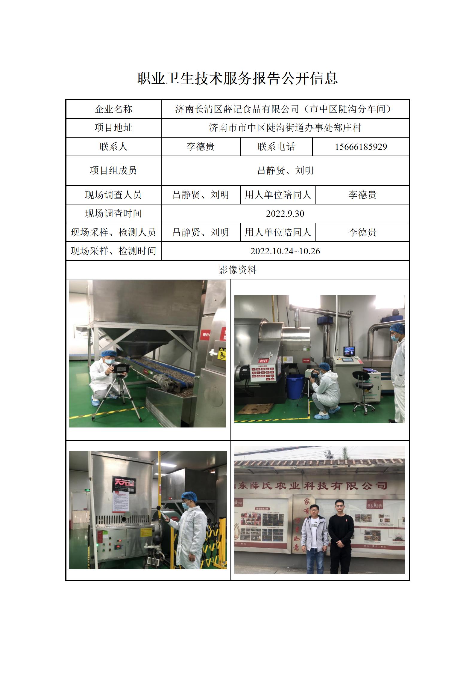 ZBZY22-XP-016济南长清区薛记食品有限公司(市中区陡沟分车间)职业病危害现状评价信息公开
