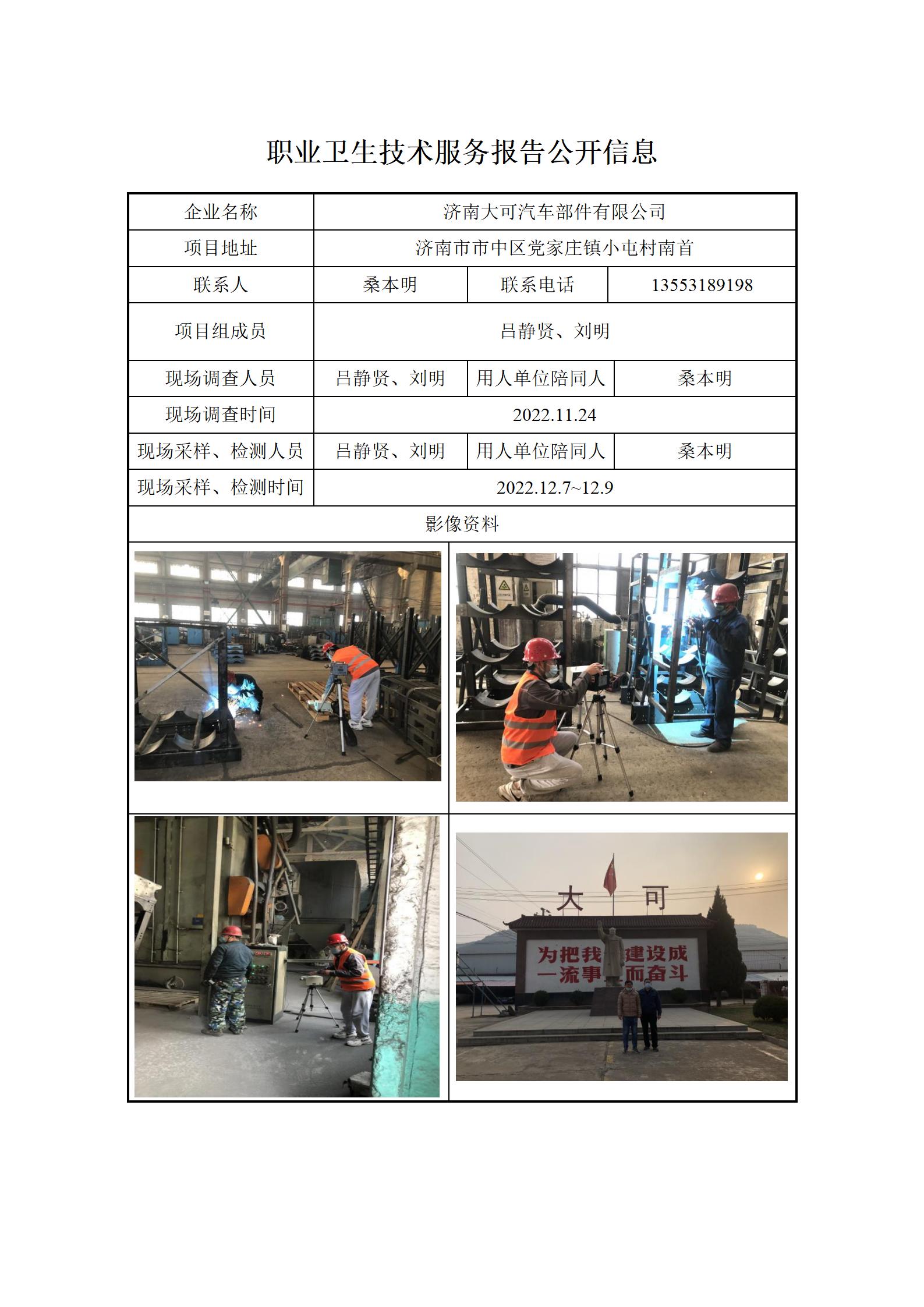 ZBZY22-XP-019济南大可汽车部件有限公司职业病危害现状评价信息公开
