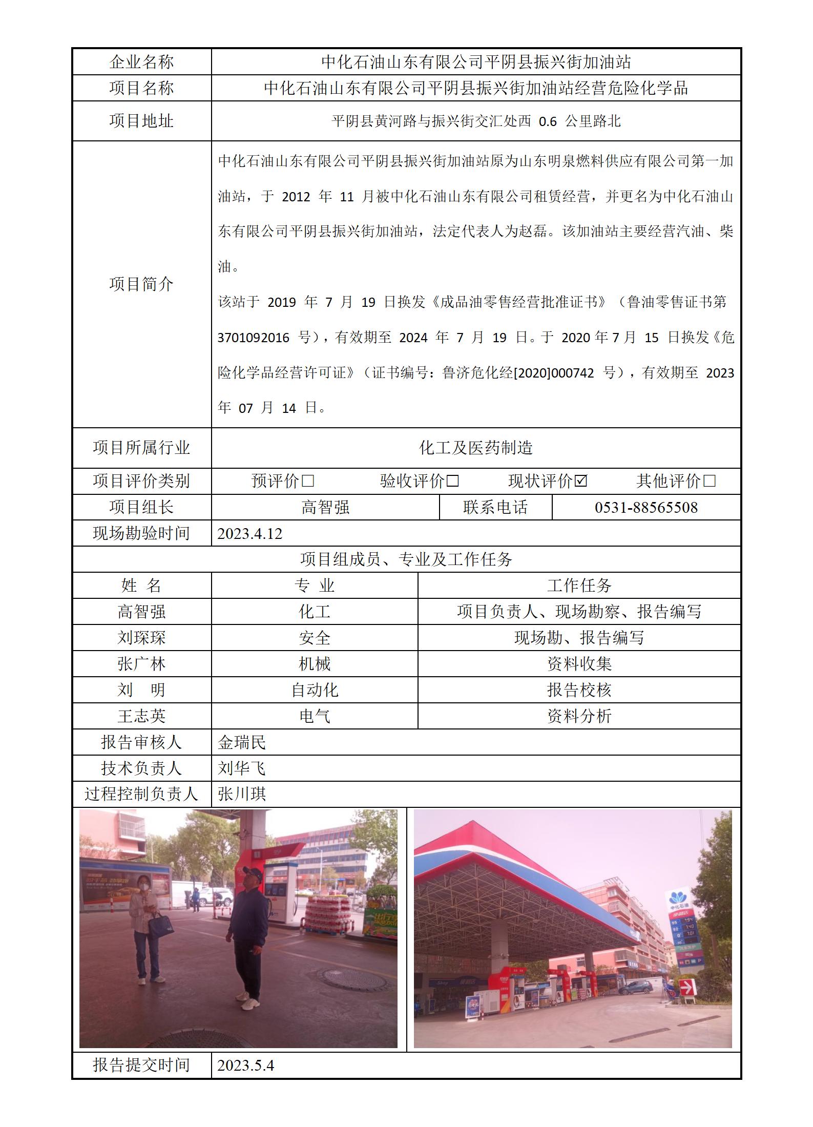 中化石油山东有限公司平阴县振兴街加油站安全评价报告信息公开