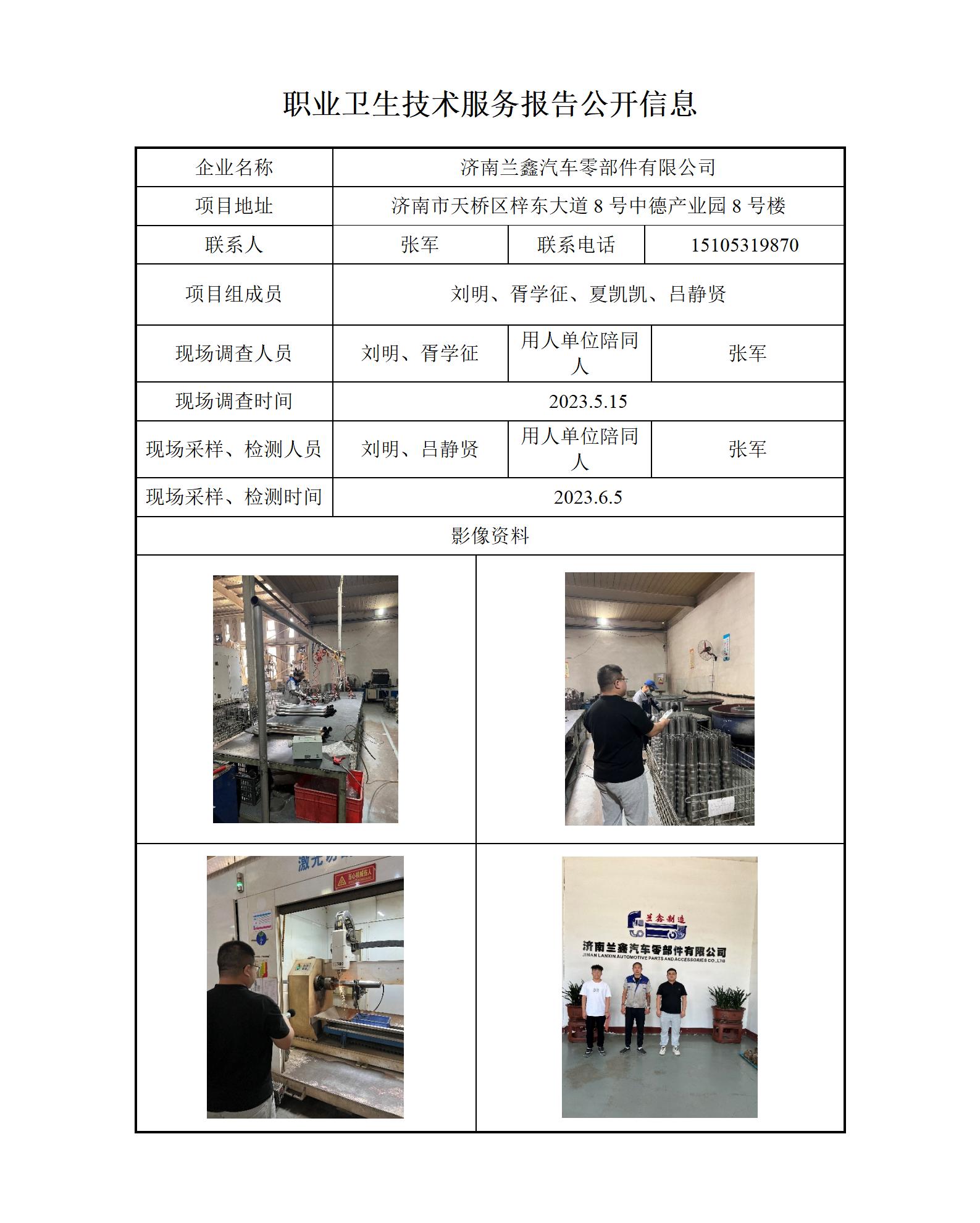 ZBZY23-DQ-044济南兰鑫汽车零部件有限公司 职业卫生技术服务报告公开信息