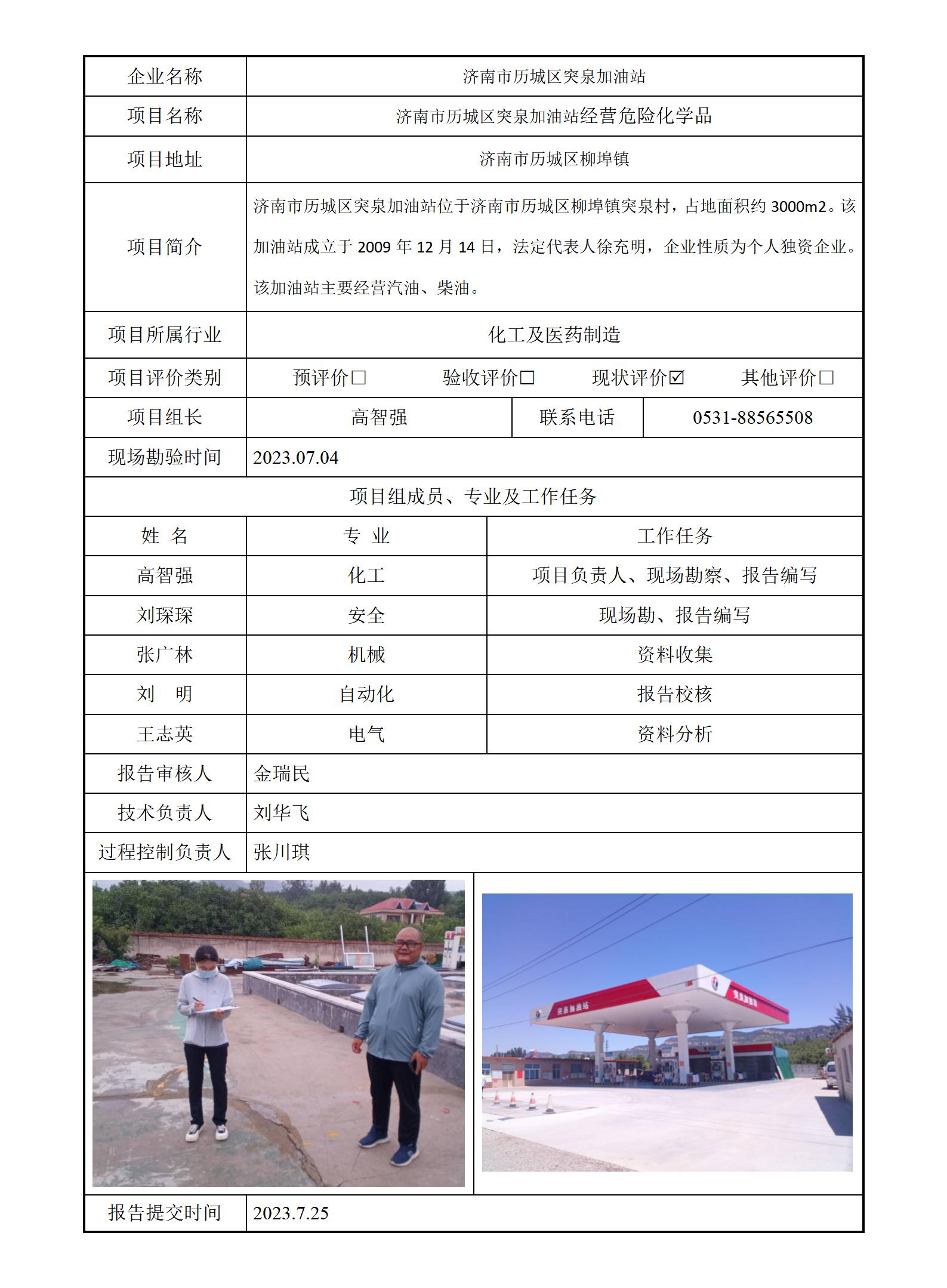 济南市历城区突泉加油站安全评价报告信息公开