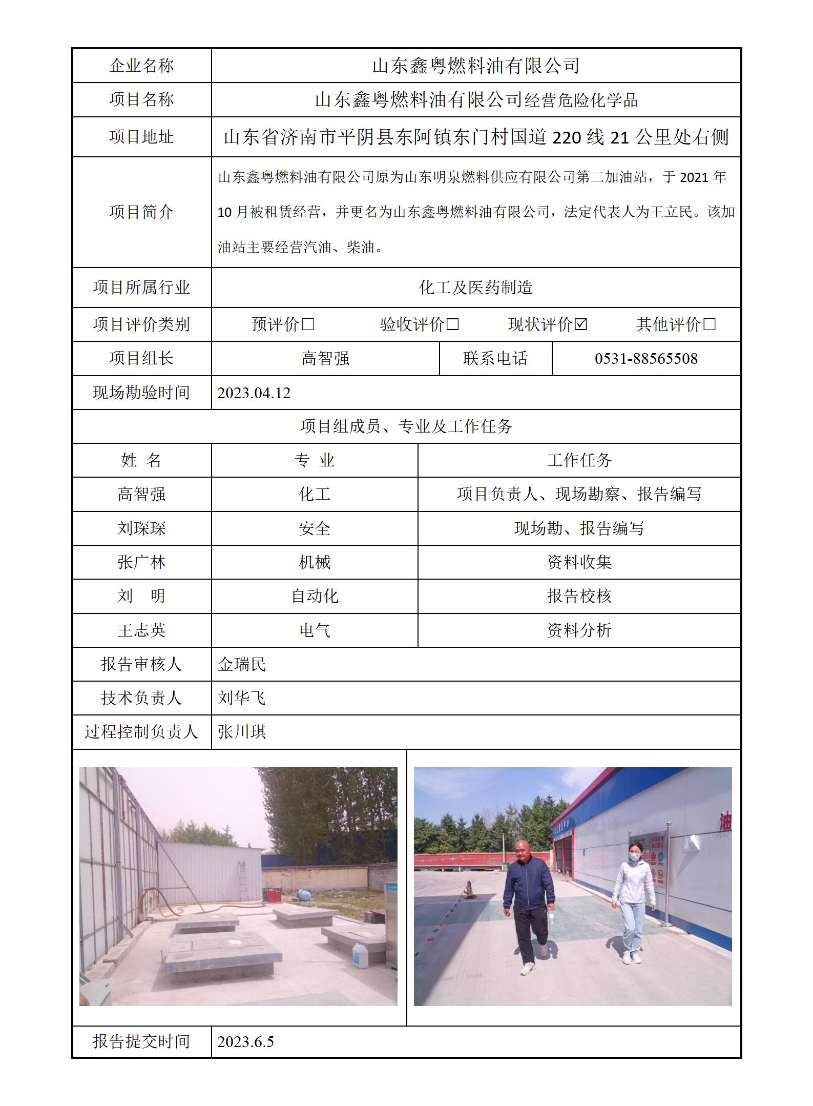 山东鑫粤燃料油有限公司安全评价报告信息公开