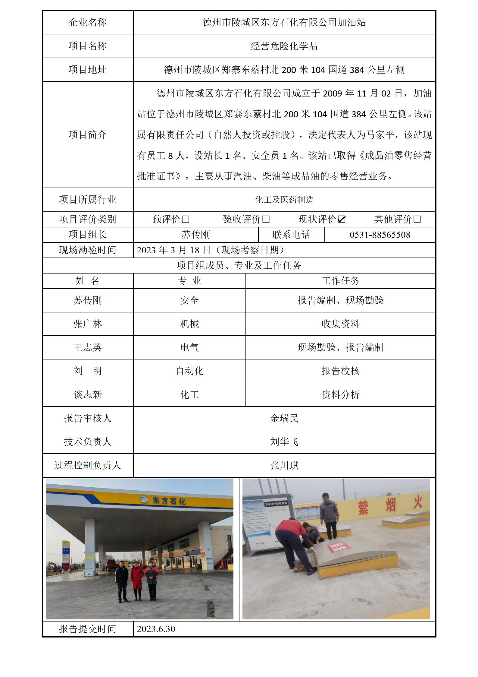 德州市陵城区东方石化有限公司加油站安全评价报告信息公开