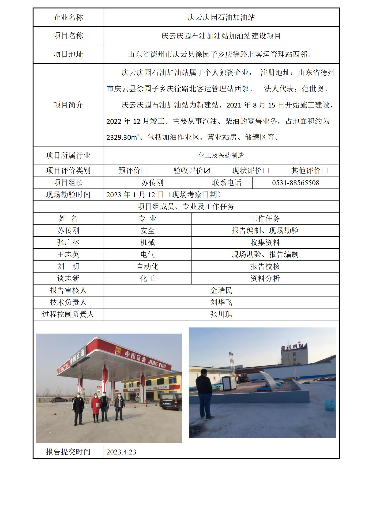 庆云庆园石油加油站安全评价报告信息公开