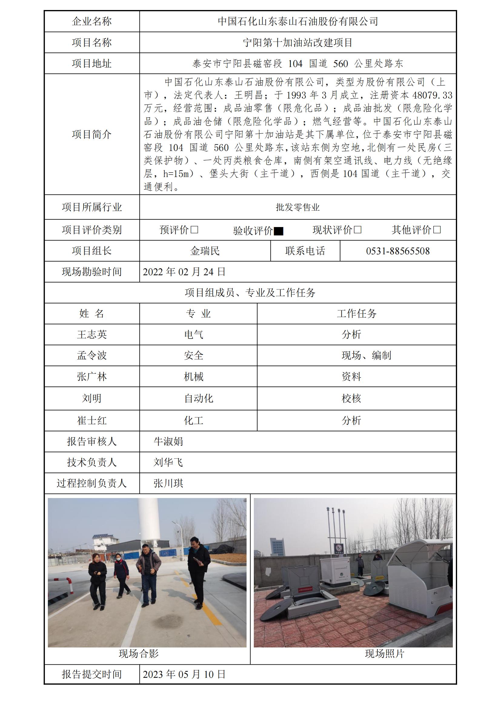 中国石化销售股份有限公司宁阳第十加油站改建项目安全评价报告信息公开