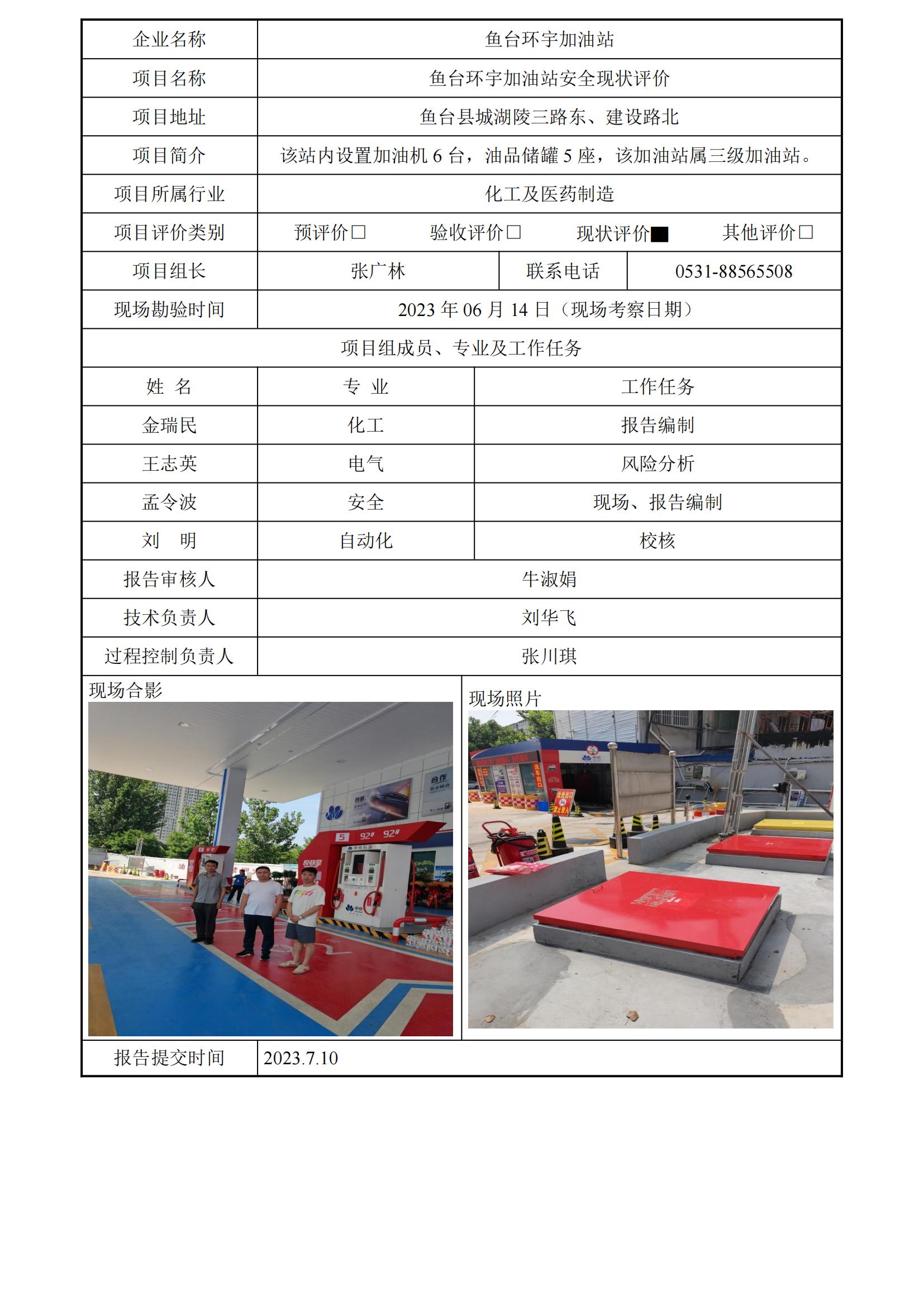 鱼台环宇加油站安全评价报告信息公开