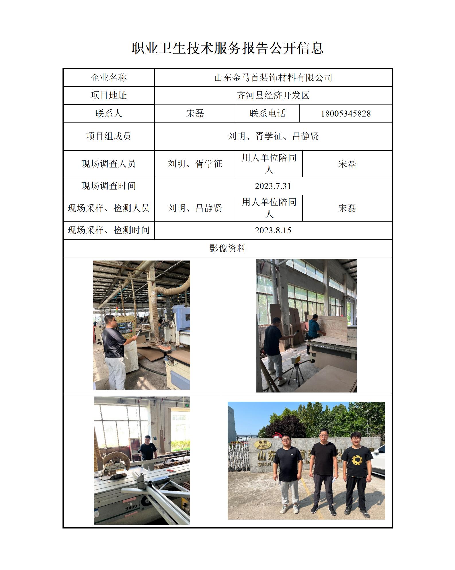 ZBZY23-DQ-079山东金马首装饰材料有限公司 信息公开