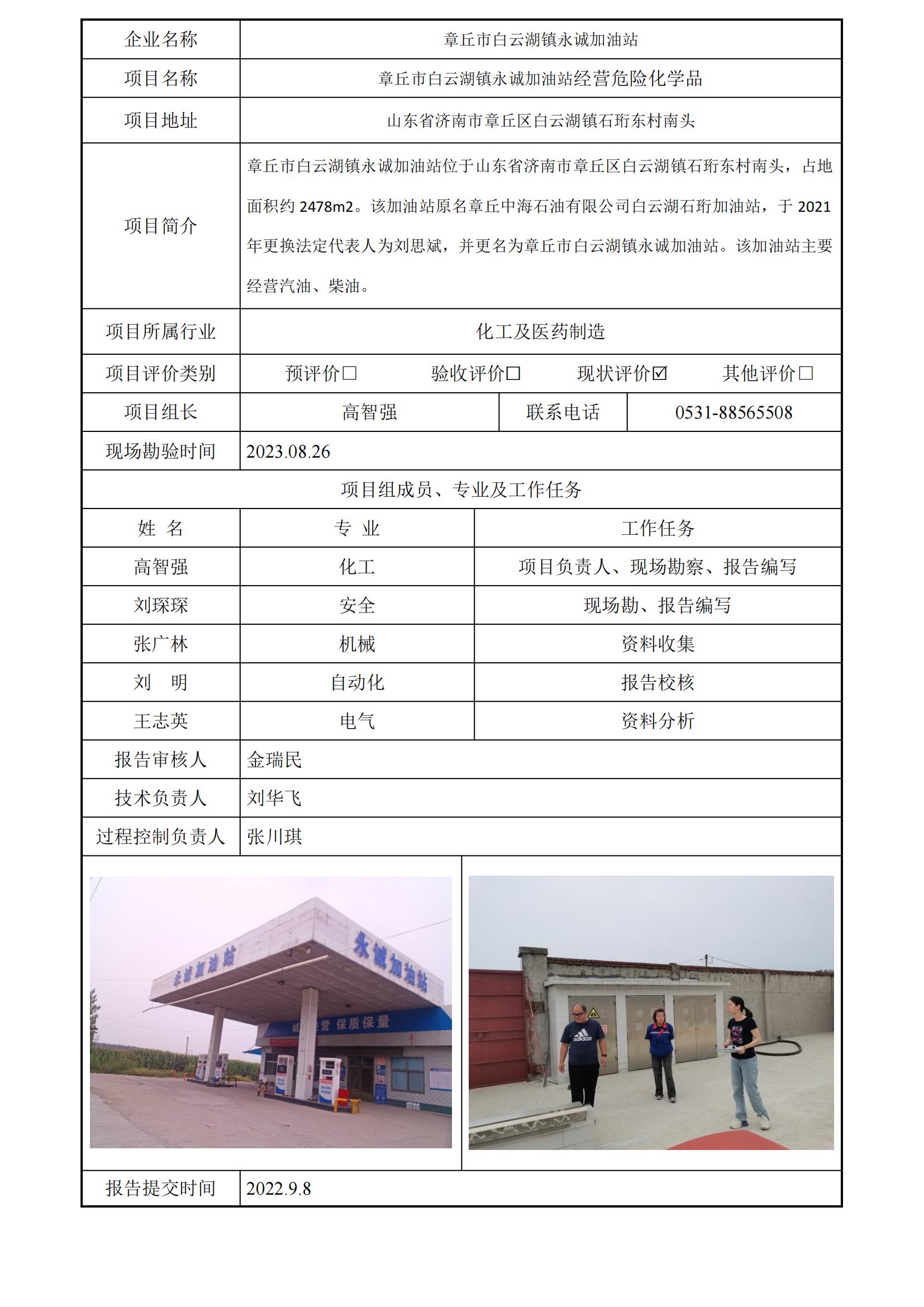 章丘市白云湖镇永诚加油站安全评价报告信息公开