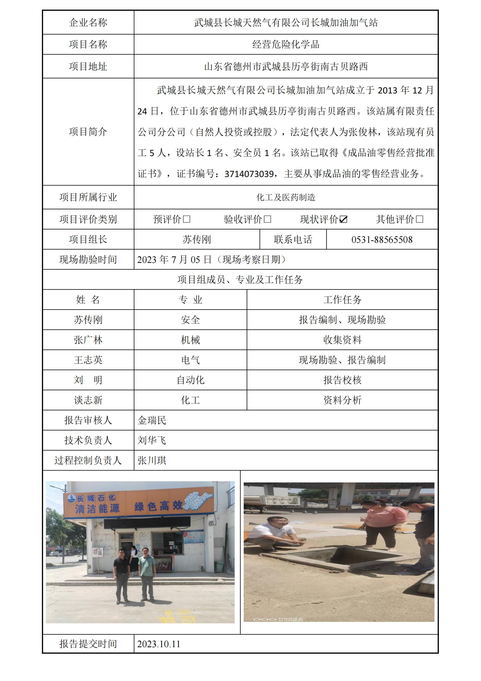 武城县长城天然气有限公司长城加油加气站安全评价报告信息公开
