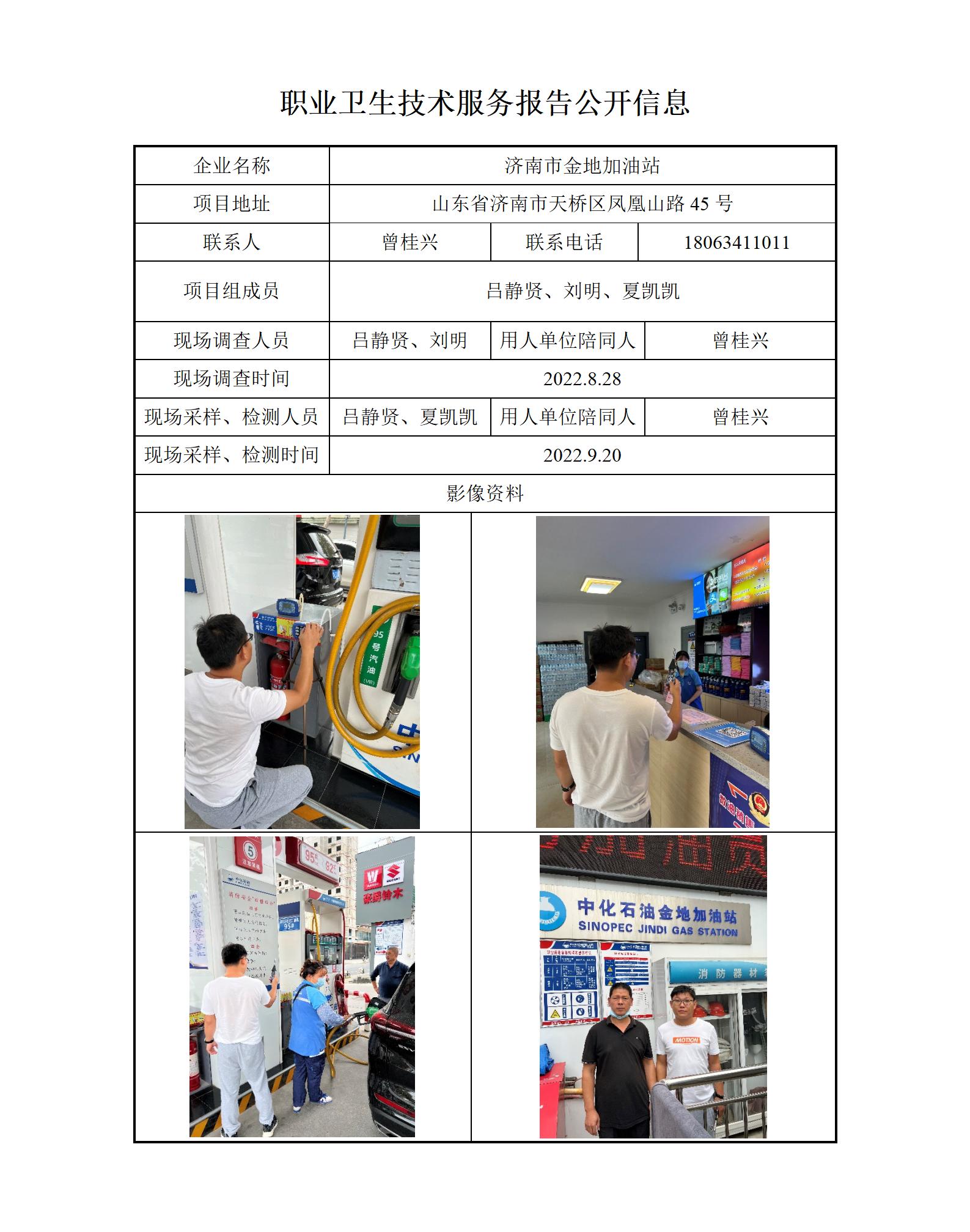 ZBZY22-DQ-085济南市金地加油站 职业卫生技术服务报告公开信息