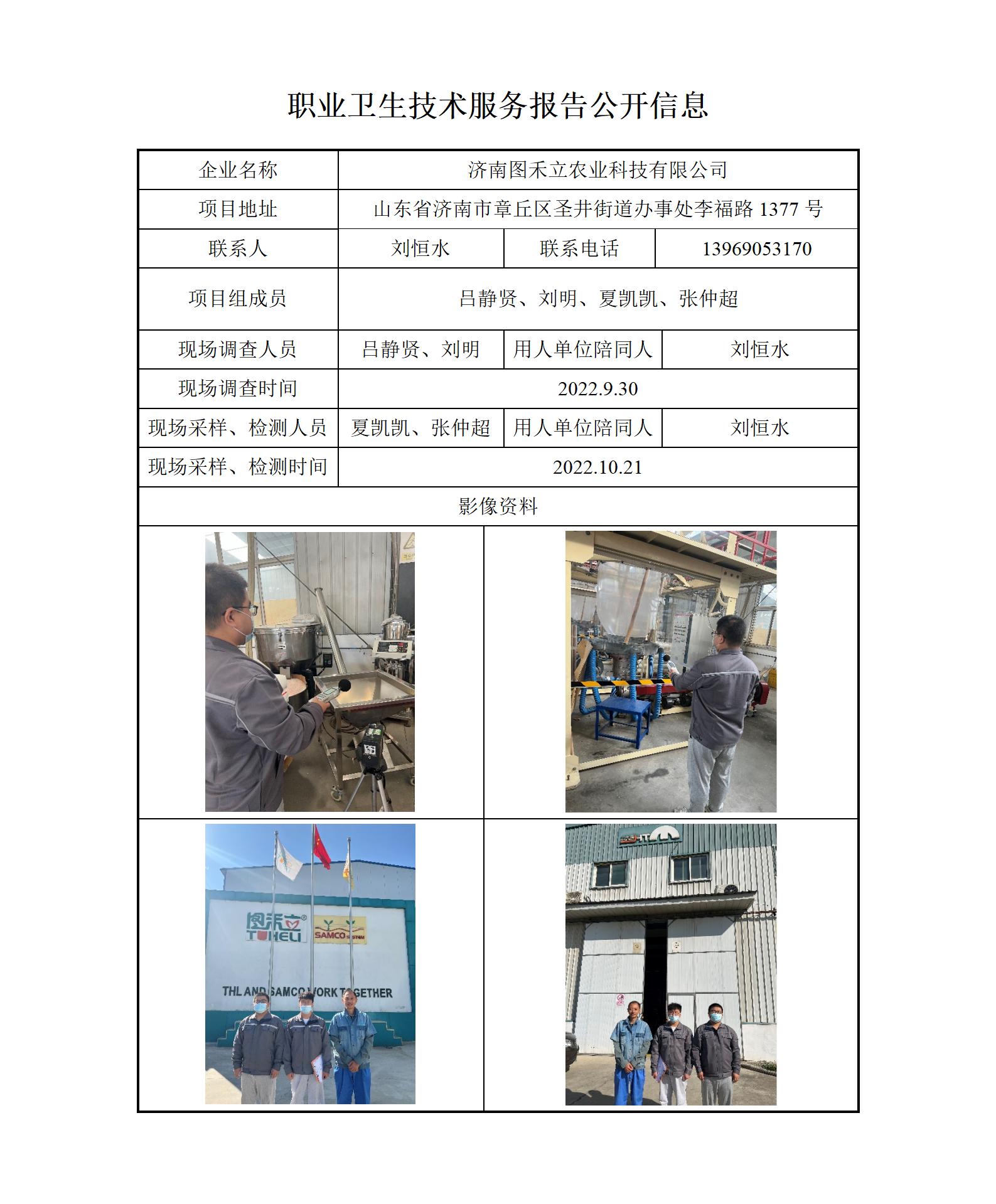 ZBZY22-DQ-103济南图禾立农业科技有限公司 职业卫生技术服务报告公开信息