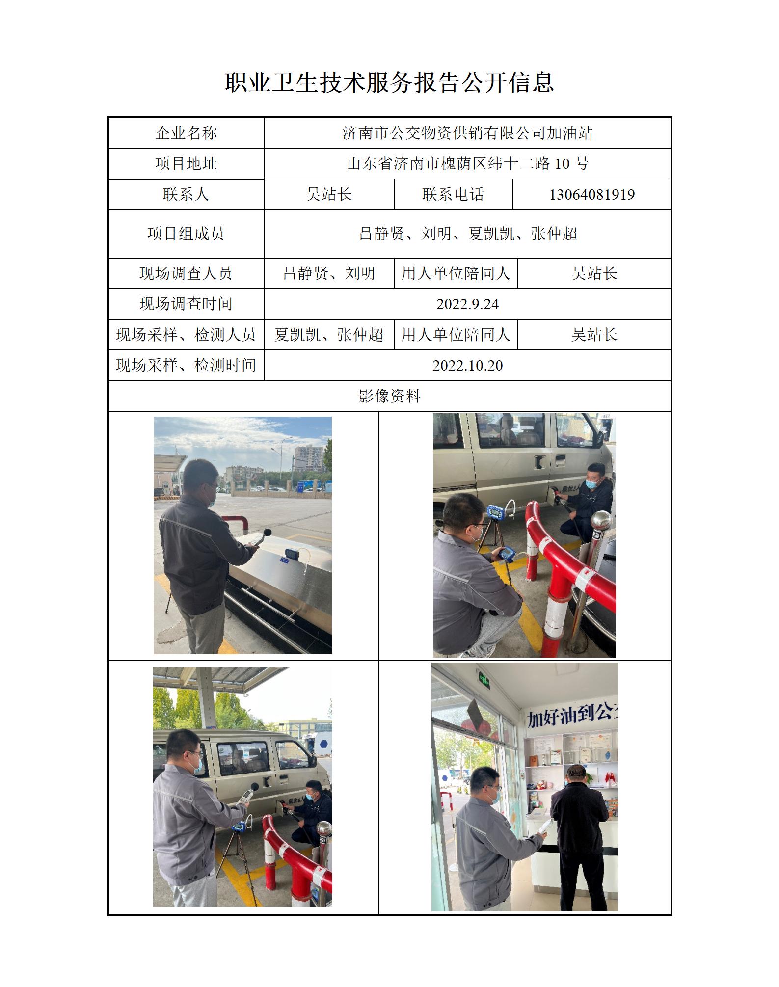 ZBZY22-DQ-104济南市公交物资供销有限公司加油站 职业卫生技术服务报告公开信息