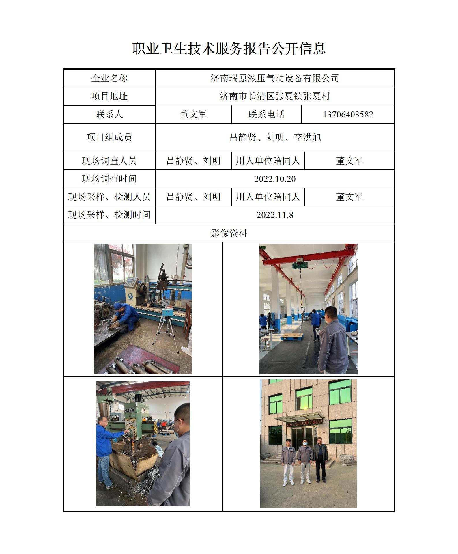 ZBZY22-DQ-109济南瑞原液压气动设备有限公司 职业卫生技术服务报告公开信息
