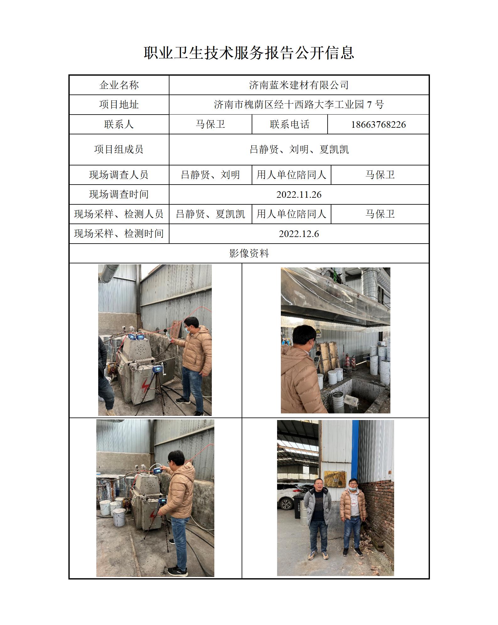 ZBZY22-DQ-115济南蓝米建材有限公司 职业卫生技术服务报告公开信息