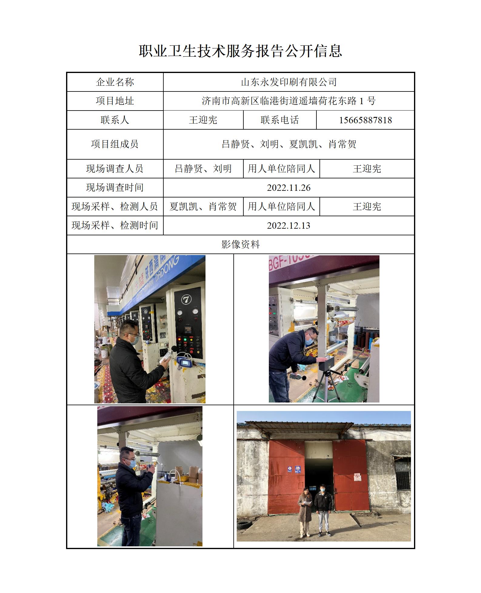 ZBZY22-DQ-116山东永发印刷有限公司 职业卫生技术服务报告公开信息