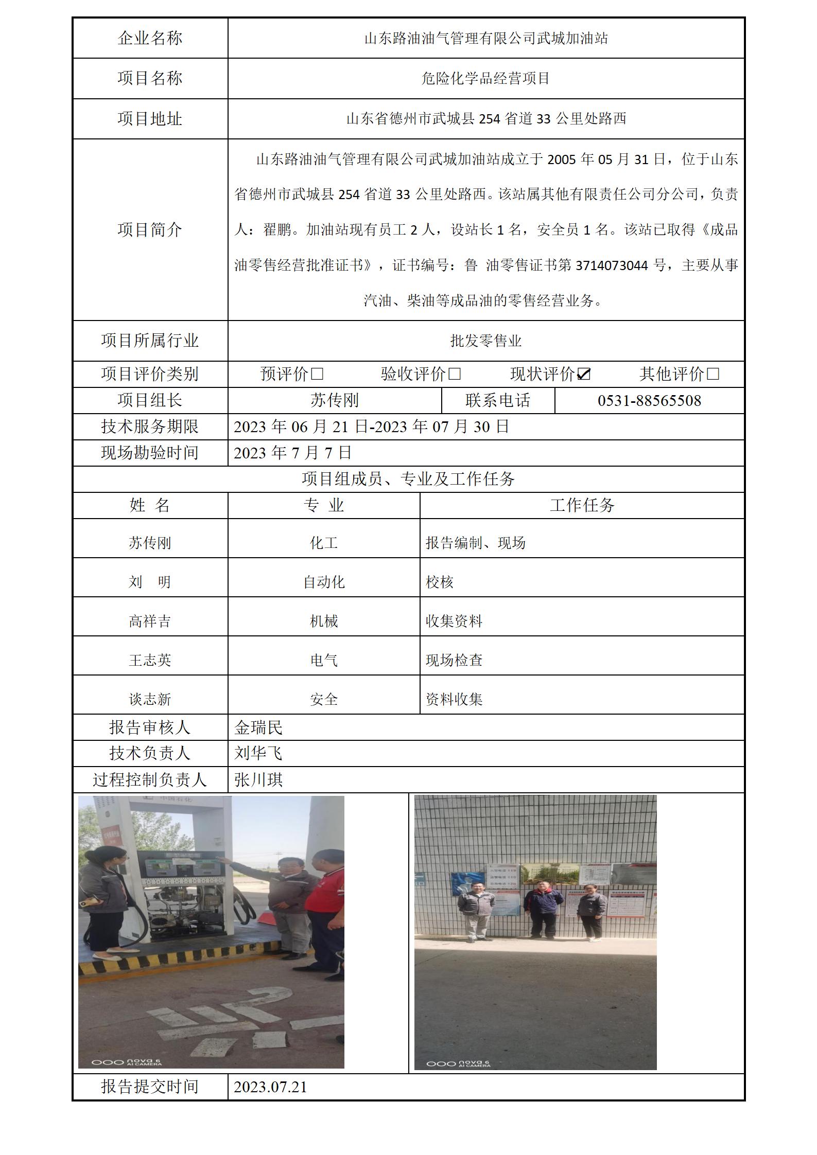 山东路油油气管理有限公司武城加油站安全评价报告信息公开表