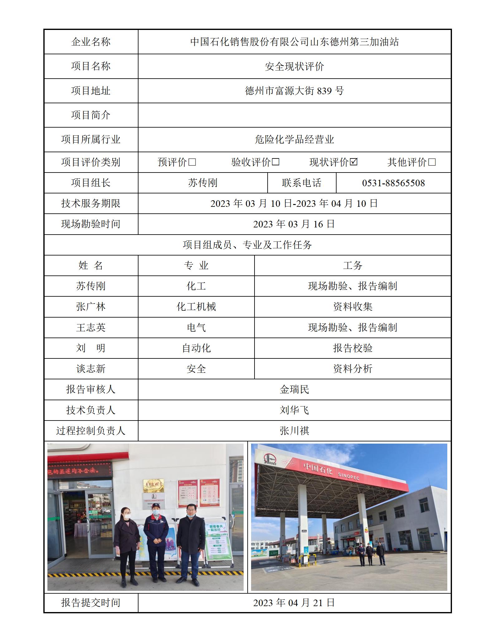 中国石化销售股份有限公司山东德州第三加油站安全评价报告信息公开