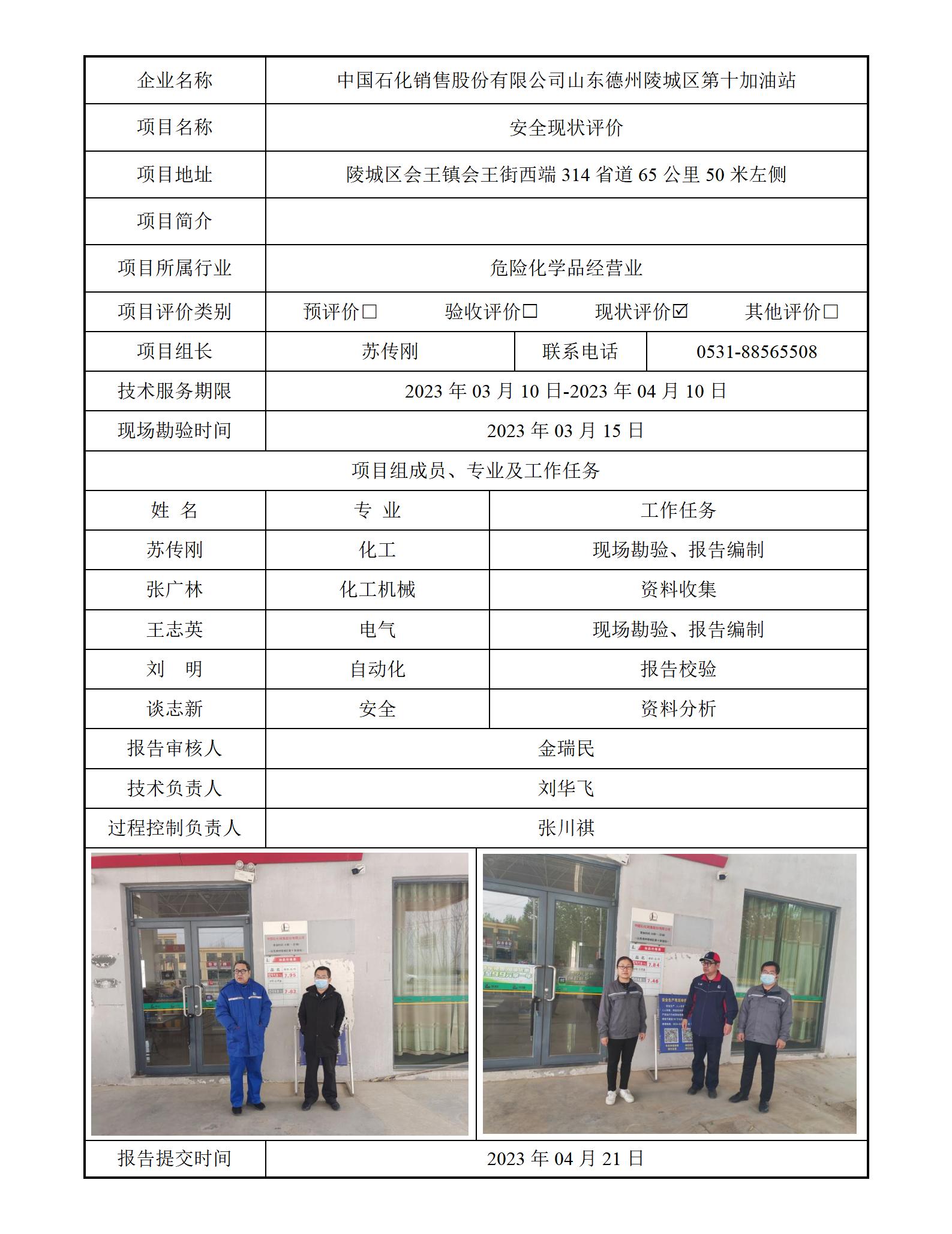 中国石化销售股份有限公司山东德州陵城区第十加油站安全评价报告信息公开