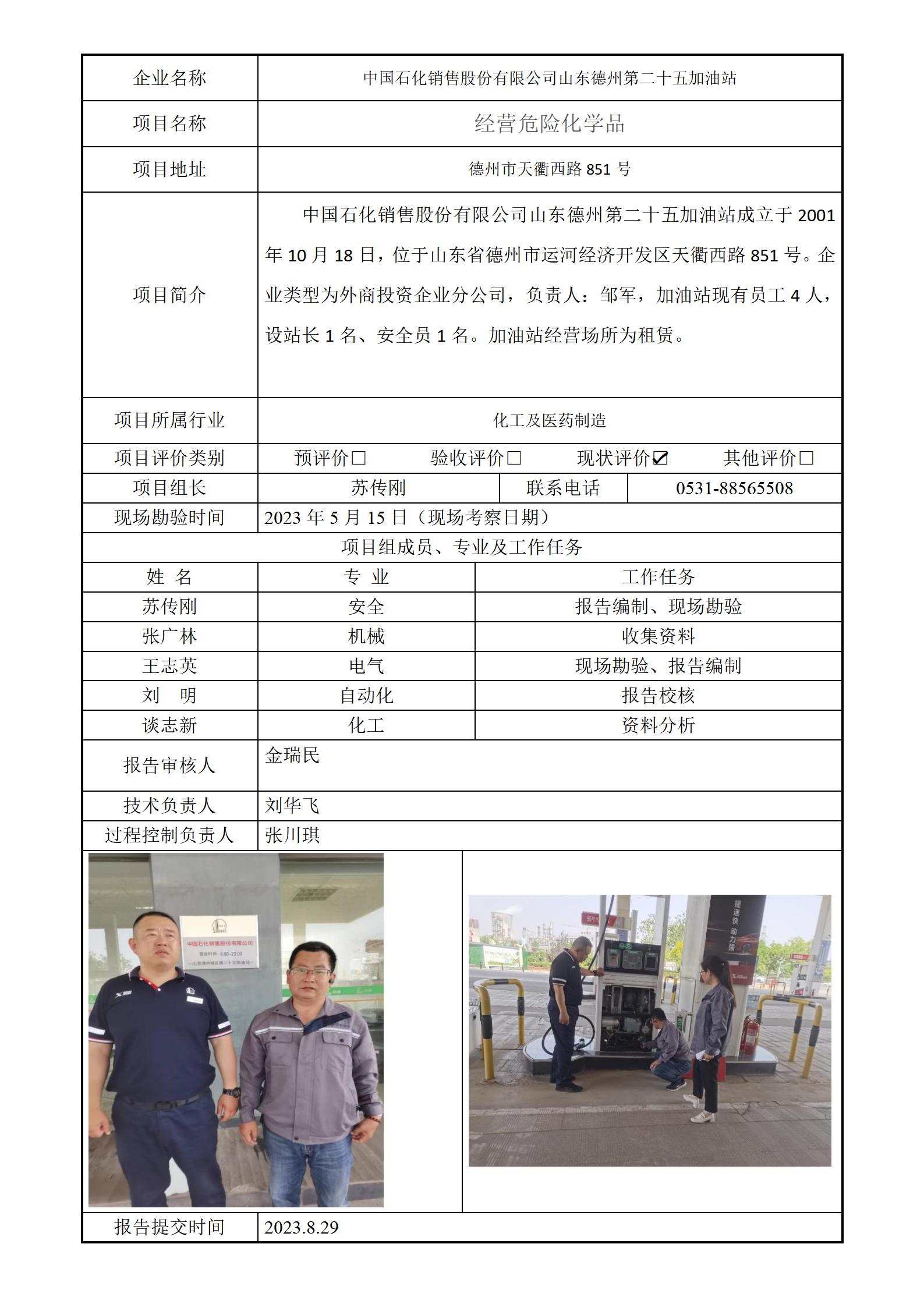 中国石化销售股份有限公司山东德州第二十五加油站安全评价报告信息公开