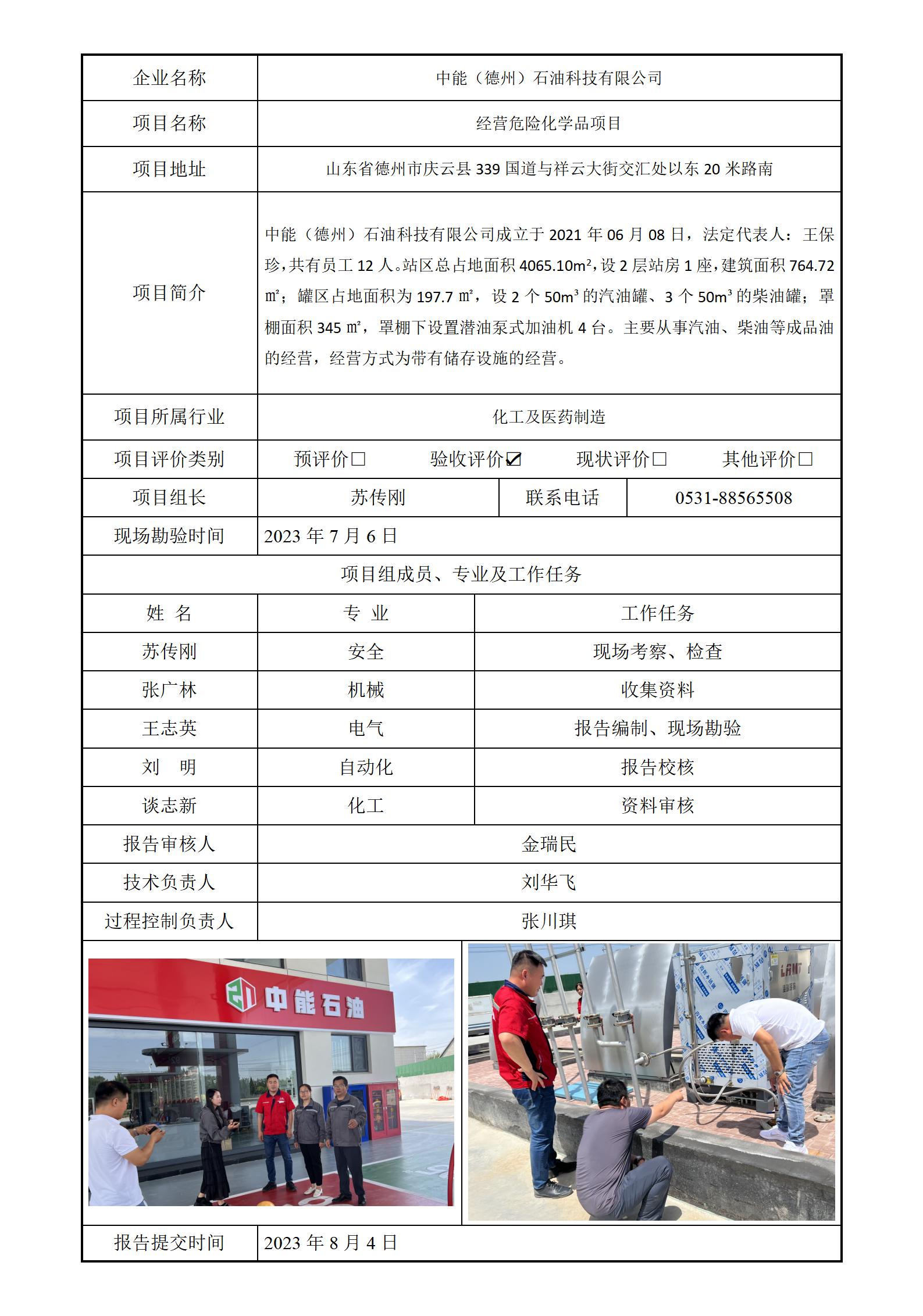 中能(德州)石油科技有限公司安全评价报告信息公开