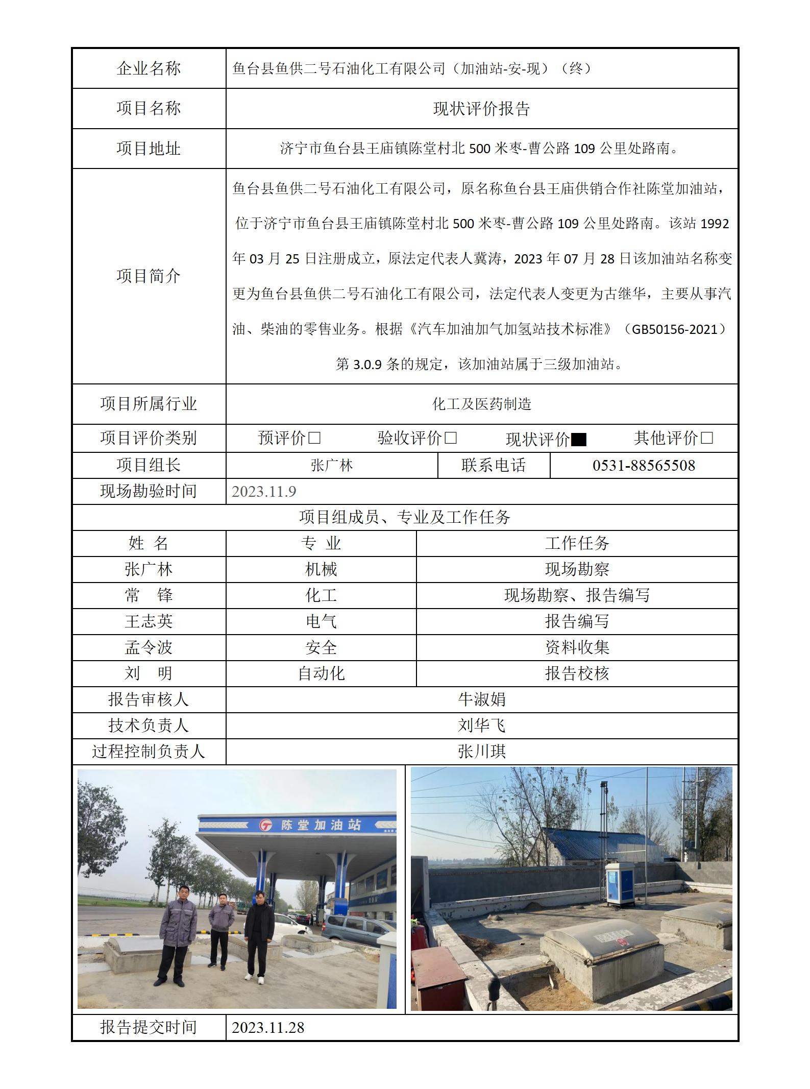 鱼台县鱼供二号石油化工有限公司安全评价报告信息公开